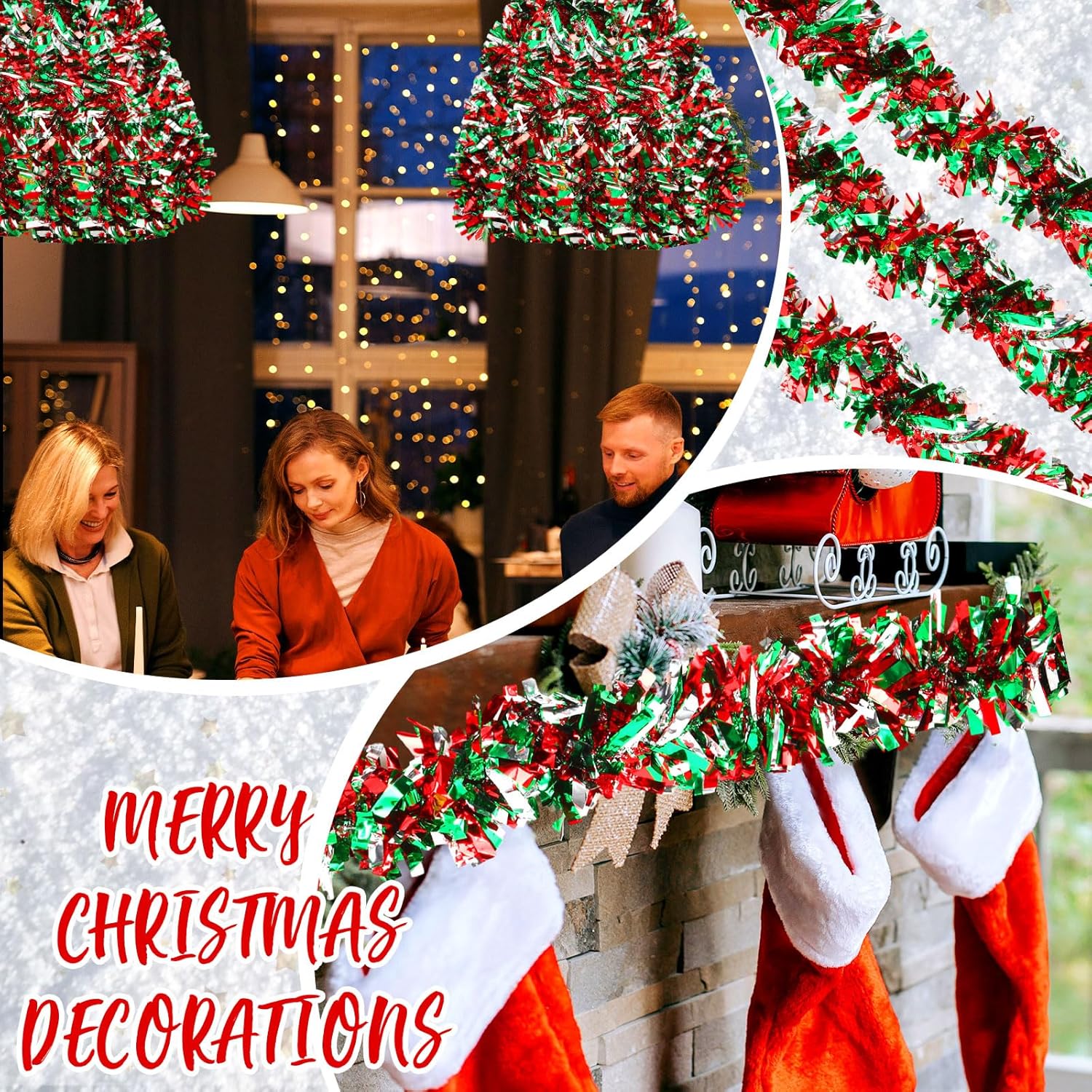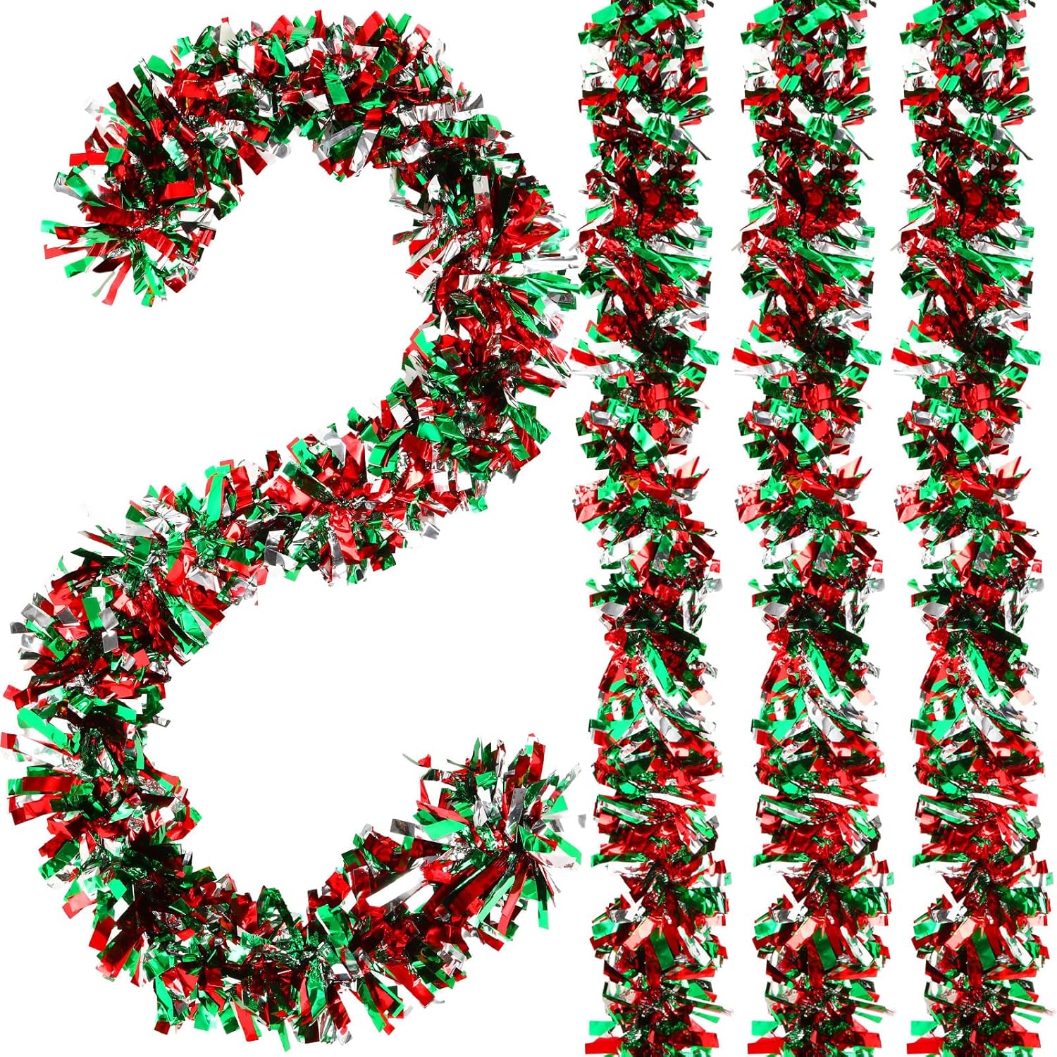 Yilloog 30 Pcs 196 Feet Christmas Tinsel Garland Metallic Tinsel Twist Garland Christmas Tree Decorations Glitter Christmas Party Hanging Wreath Decoration Indoor Outdoor Ornament (Red,Green,White)