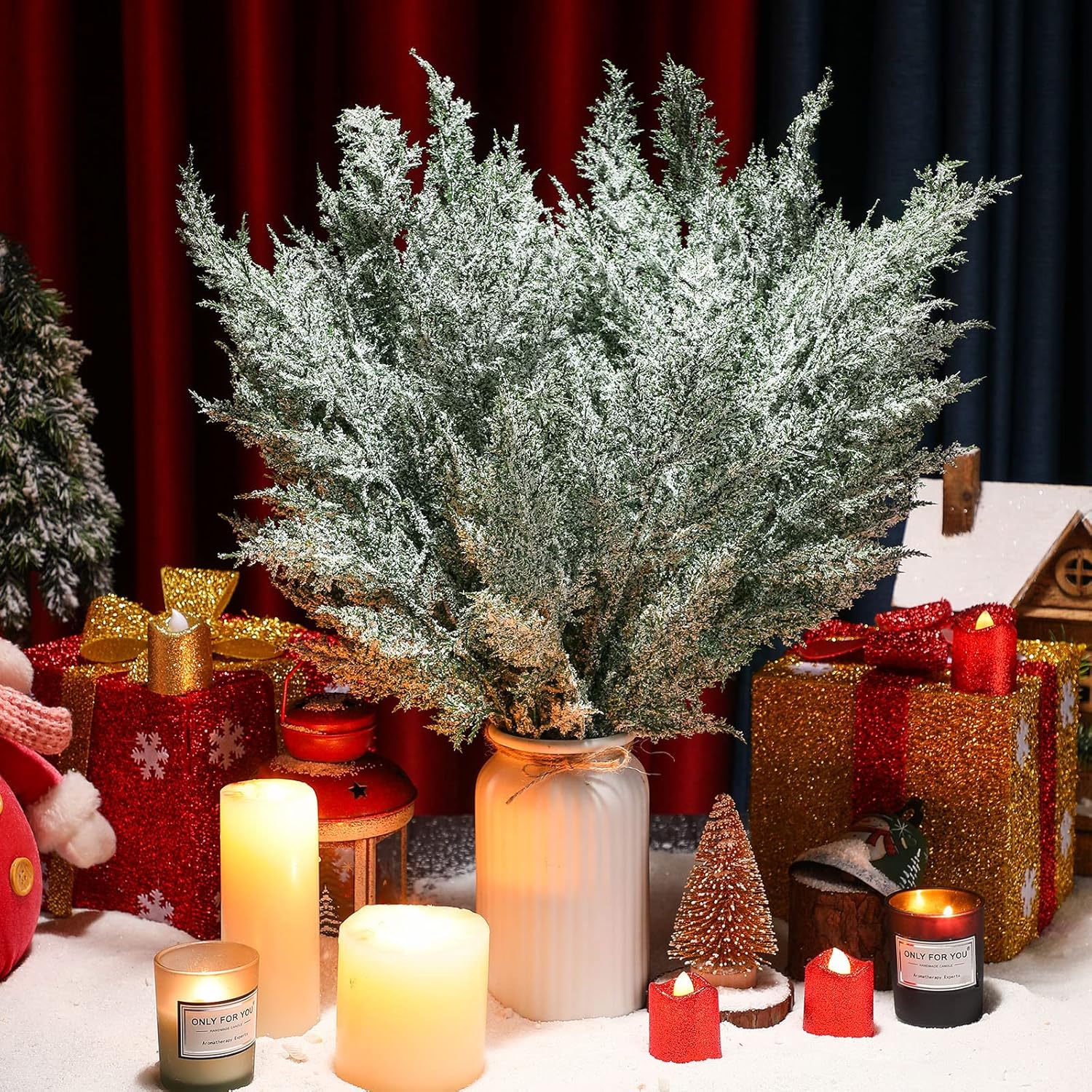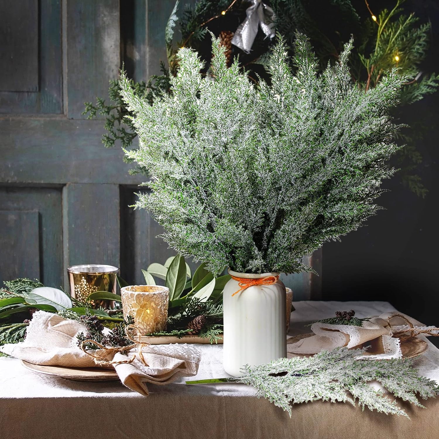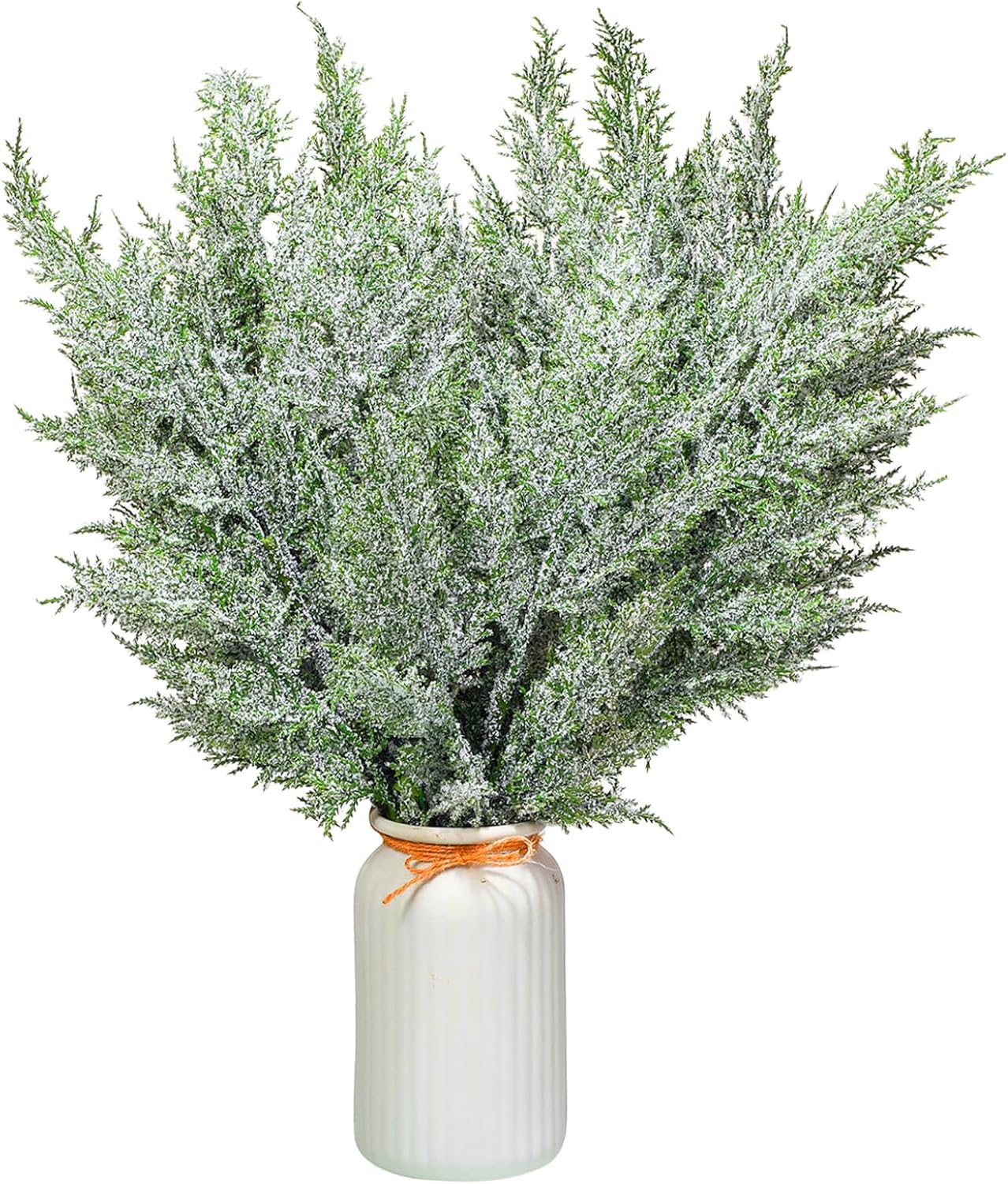 Yinder 12 Pcs 18.5 Inch Snowy Faux Cedar Branches Frosted Artificial Cedar Picks and Sprays Cedar Twigs Stems Christmas Greenery Stems Green Artificial Cedar Sprigs for Christmas Holiday (Classic)