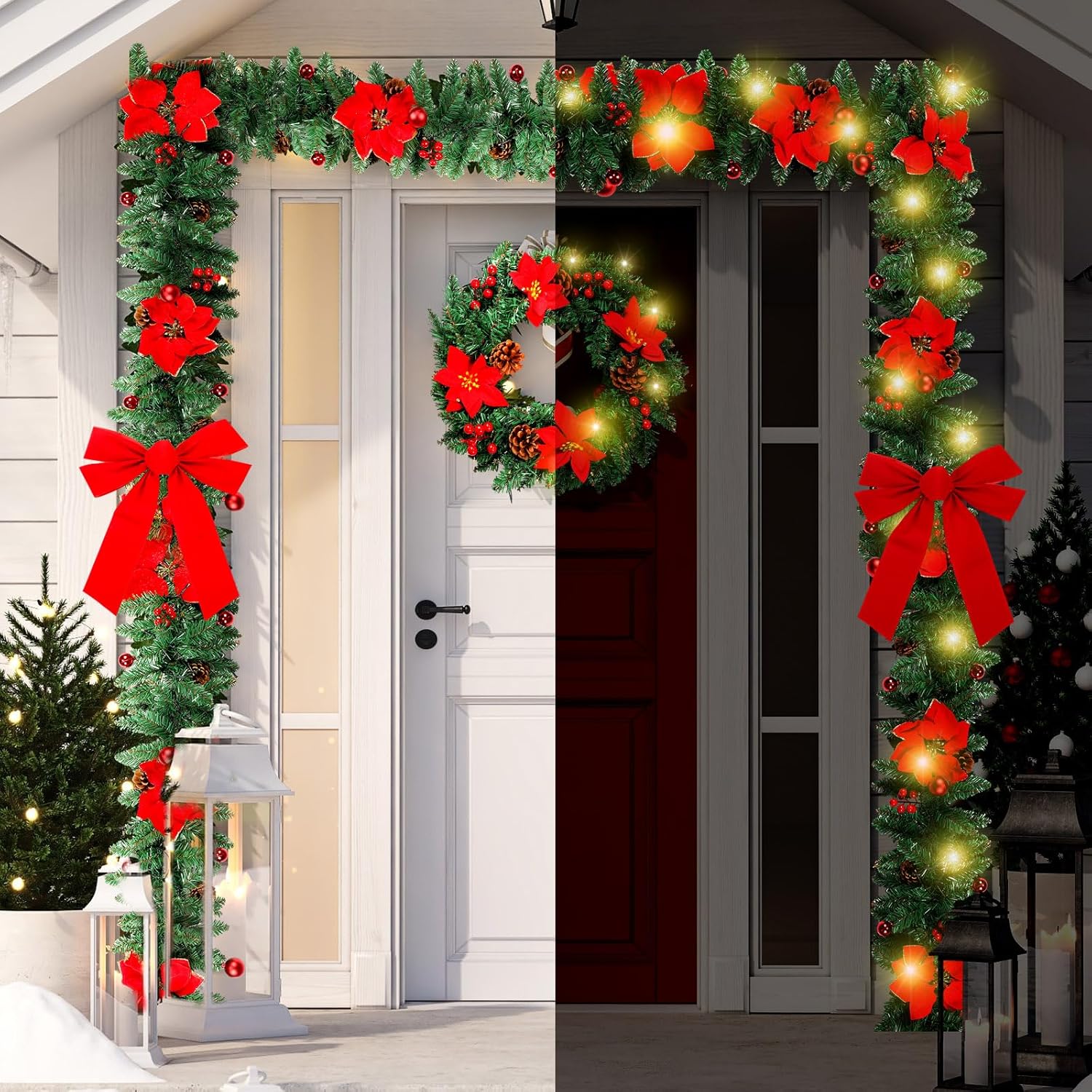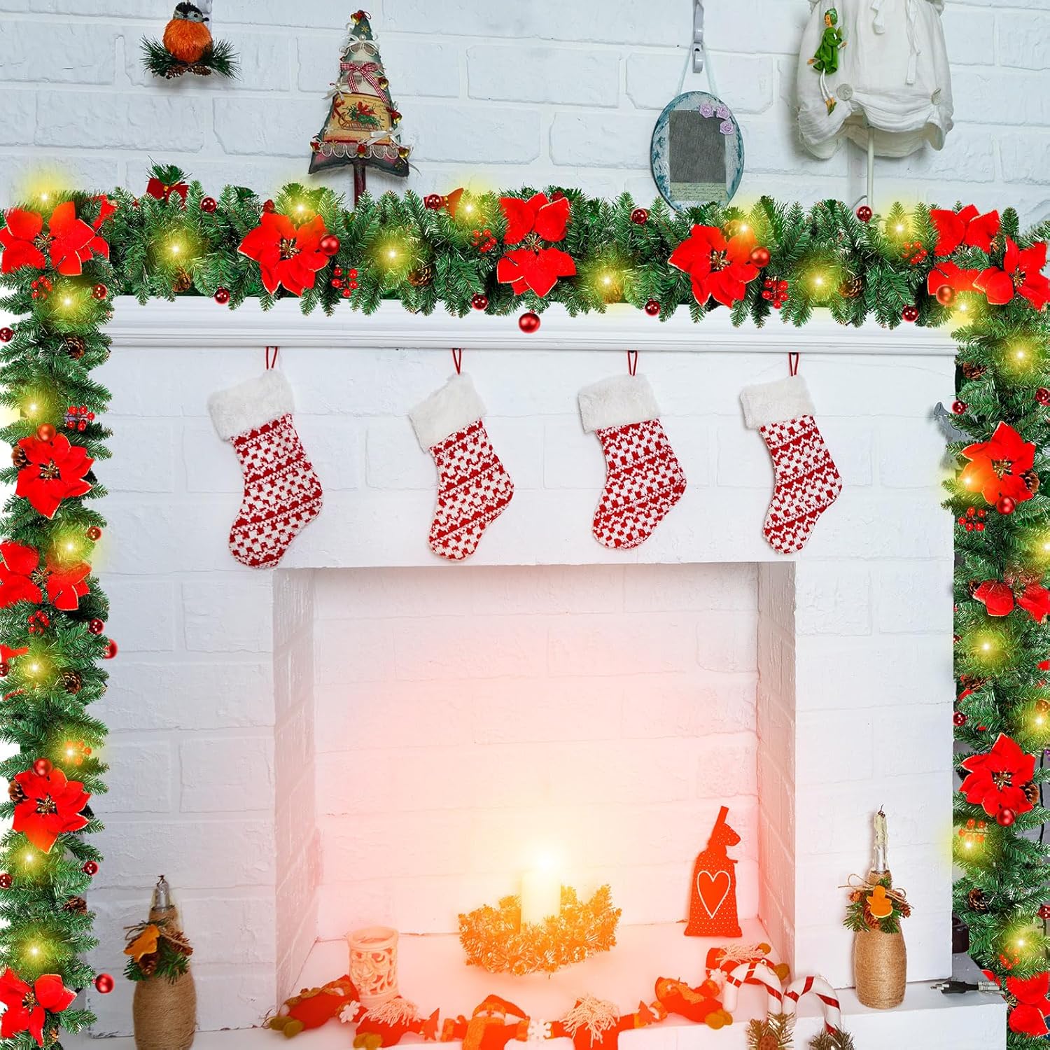 • Wonderful Christmas Decorations: this holiday wreath is ideal for decorating homes, shops, hotels, living rooms, Christmas parties You can hang them up on front doors, fireplaces, Christmas trees, mantel, porch, cabinets, shelves, as alluring decorations for the oming Christmas