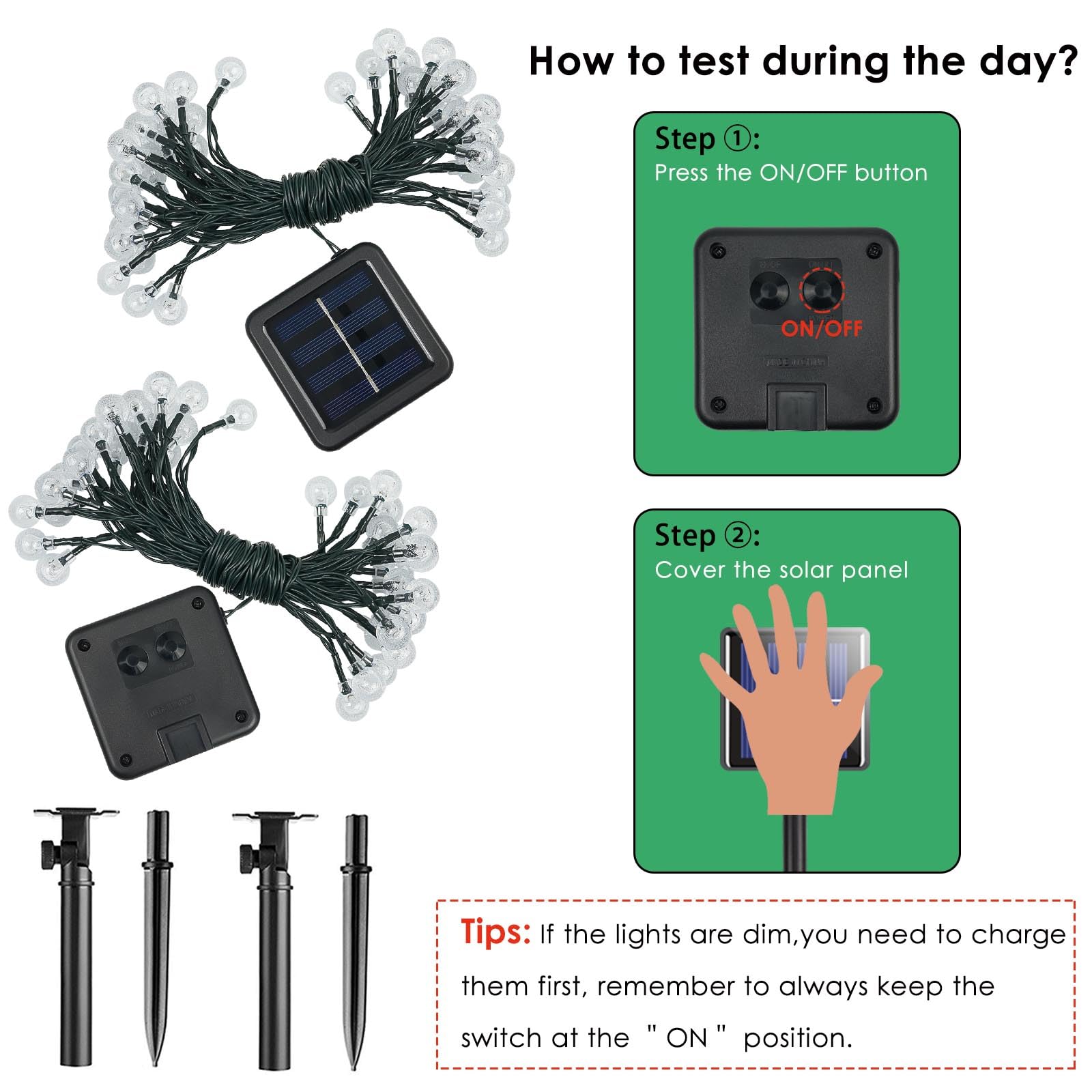 Crystal Globe Solar String Lights: 2-Pack Total 80 LED Crystal Globe, Unique 8 Lighting Modes and Memory Function and Auto On/Off, Higher Solar Powered Conversion with Better Solar Panel, Larger Capacity Built-in Battery, IP65 Waterproof Performance. Widely Used Outdoor Solar Lights: This solar lights outdoor is a great choice for Porch, Roof, Tree, Backyard, Deck, Barbecue, Umbrella, Fence, Pergola, Bistro, Restaurant, Hotel, Commercial building, Shopping Center, Dinner, Birthday, Christmas, Year Party and more.