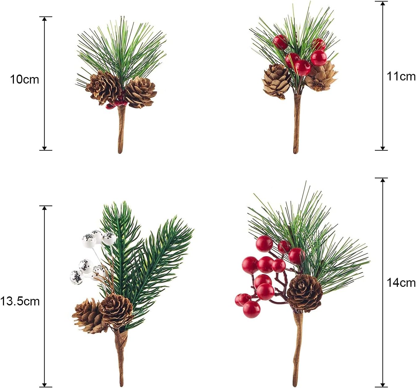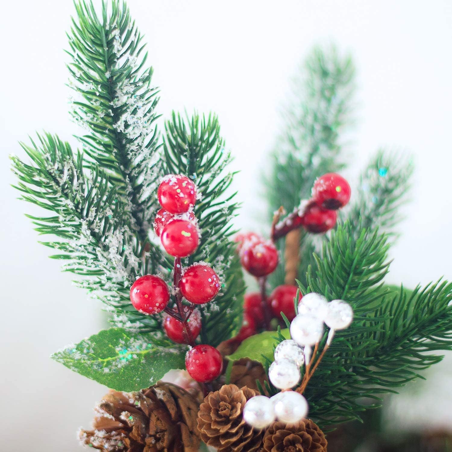 Yixiang 12Pack Artificial Christmas Picks Assorted Red Berry Picks Stems Faux Pine Picks Spray with Pinecones Apples Holly Leaves for Christmas Floral Arrangement Wreath Winter Holiday Décor