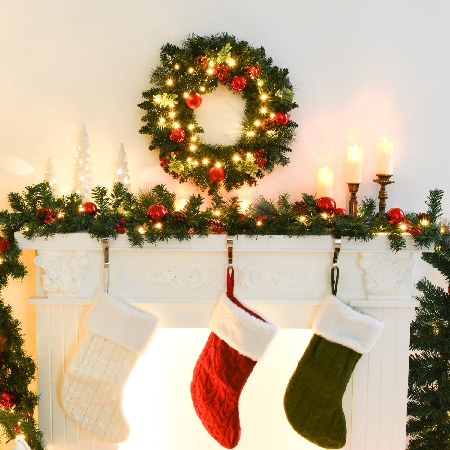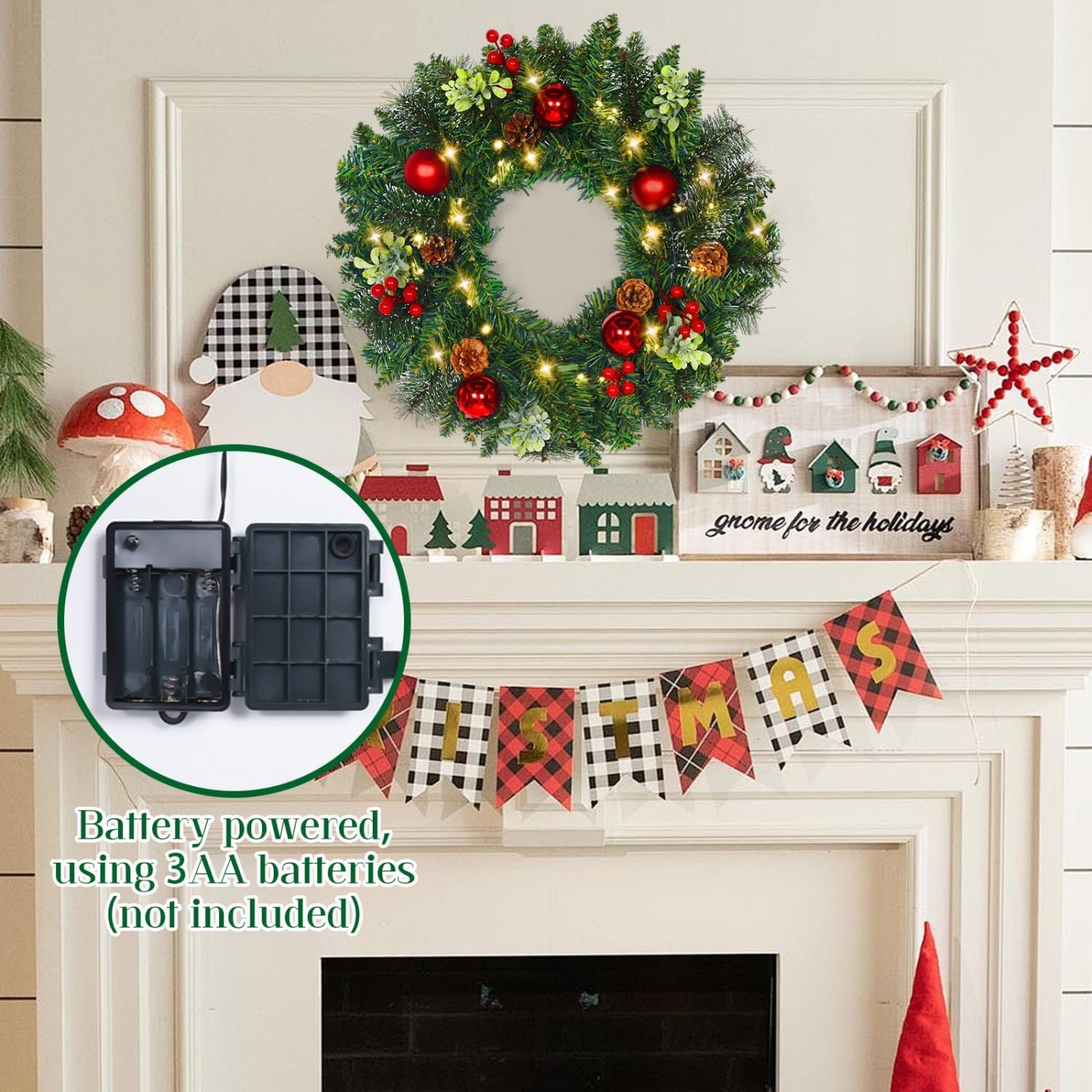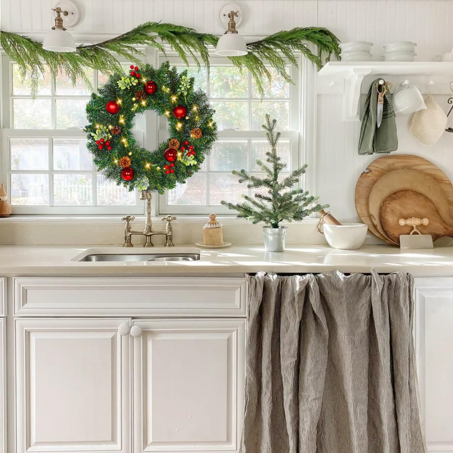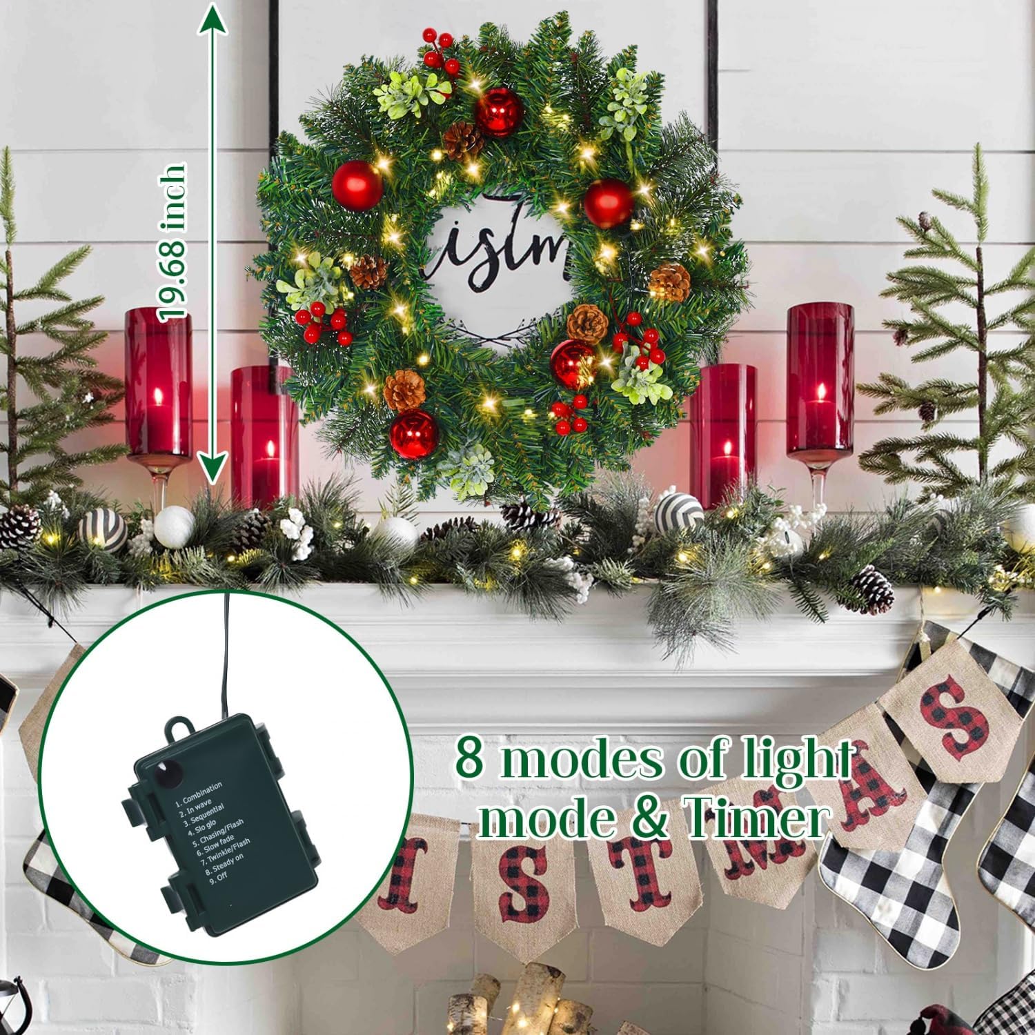 YoleShy 20 Inch Christmas Wreath with Bells & Red Berries, Christmas Wreath Christmas Decorations for Window, Front Door, Wall Decor, Fireplace