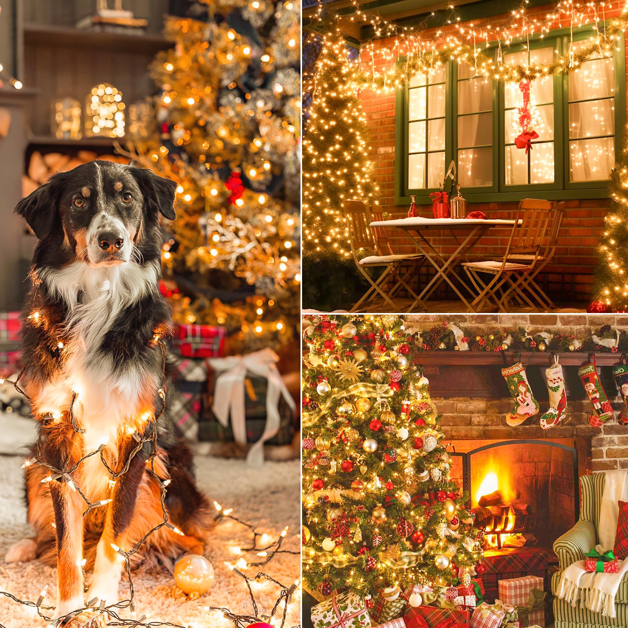 • Connectable for Great Decorations: These Christmas tree lights has end-to-end male and female plugs which can be connected to up to 10 strings (130 ft long). Greatly extends the lighting range. Enough to decorate any place you want:Christmas, Halloween party, Valentine's Day, wedding, home, window, bathroom, festival, Holiday, shows, restaurant, hotel, commercial building, shopping center, trees, wreaths, wrapping trees, patios, pergolas, bushes, hedges, fences, pillars etc.