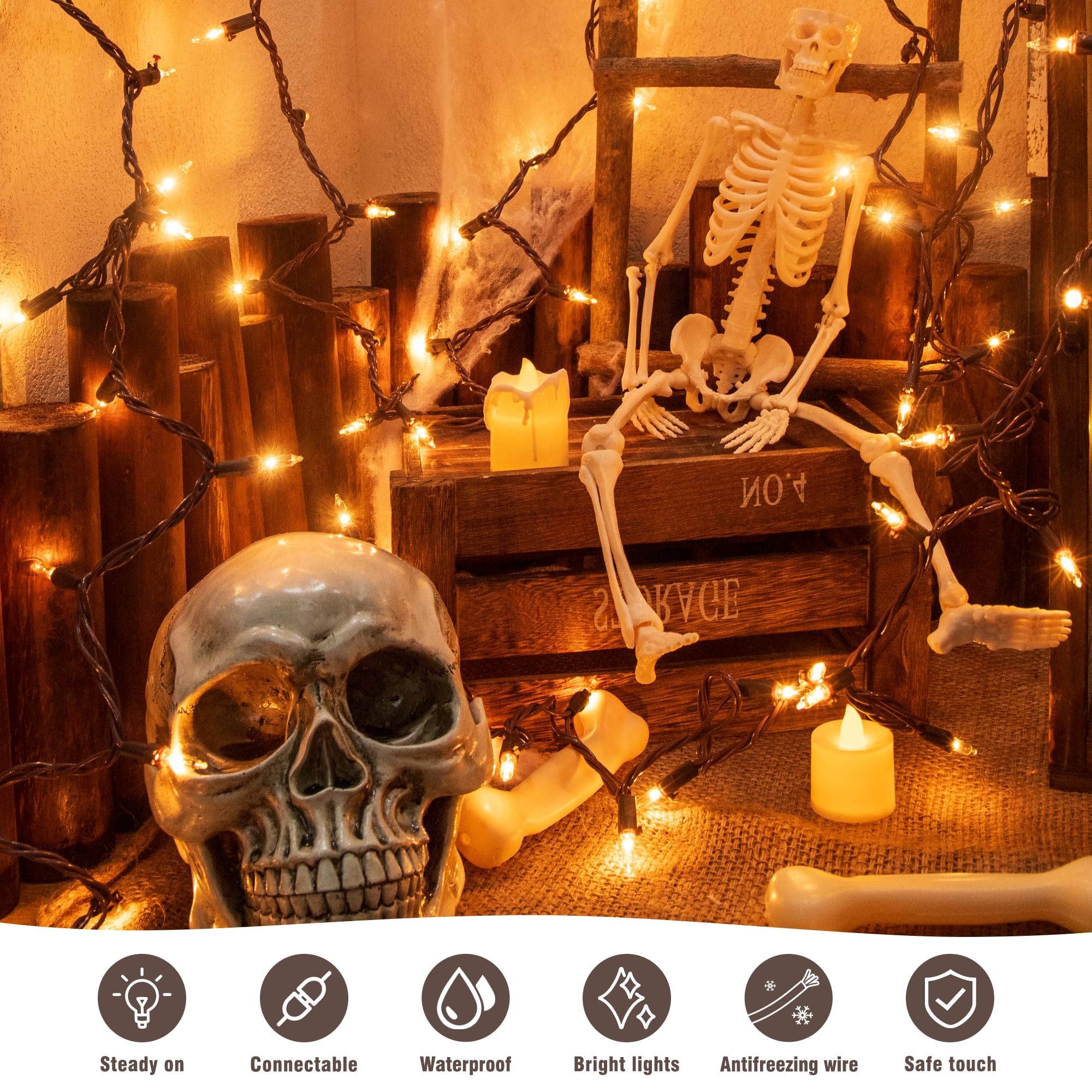 Christmas for Your Home: With 50 clear lights,YOUNGAR Christmas Brown Wire Mini Lights Set is 13 ft in total(including 11.5ft of wire with lights and 1.5ft of lead wire).Perfect for indoor and outdoor decorations. Easy & Safe to Use: Plug in or out to turn on or off the lights. Made with high quality copper and plastic,built-in 3A fuse,our lights are strictly tested and meets the US requirements.UL safety standards,economical and DurablePlease kindly protect these string lights from immersing in water.