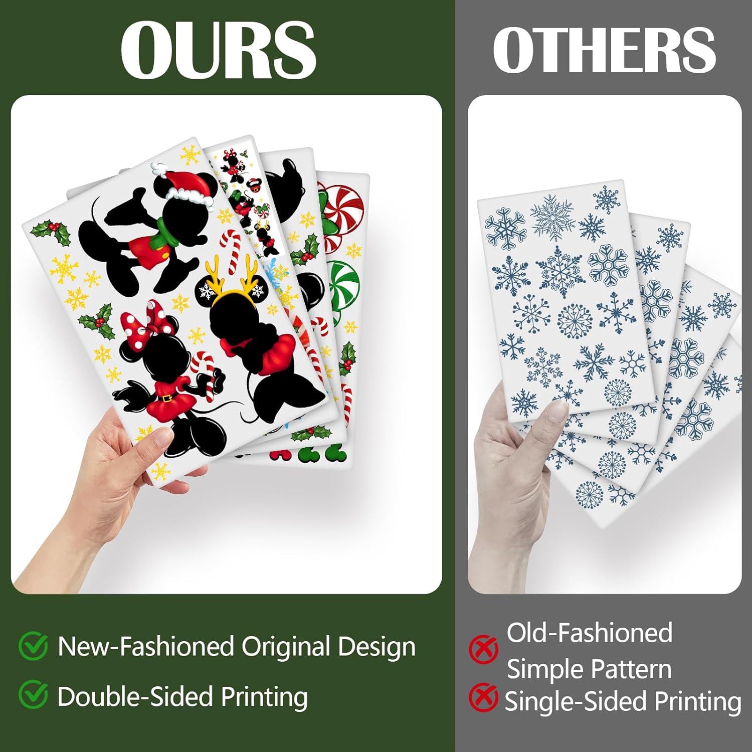 • No Adhesive Home Decor: These Christmas window decors are thin static clings, which do not require additional glue or tape, and can be easily attached to a smooth and dry surface. Just remove the window sticker and paste it on the surface of cars, trucks, glass, mirrors, windows, glass vandal-proof doors and bathroom surfaces and use a card to squeeze out air bubbles from top to bottom. It is easy to attach to your window and remove without leaving sticky residue