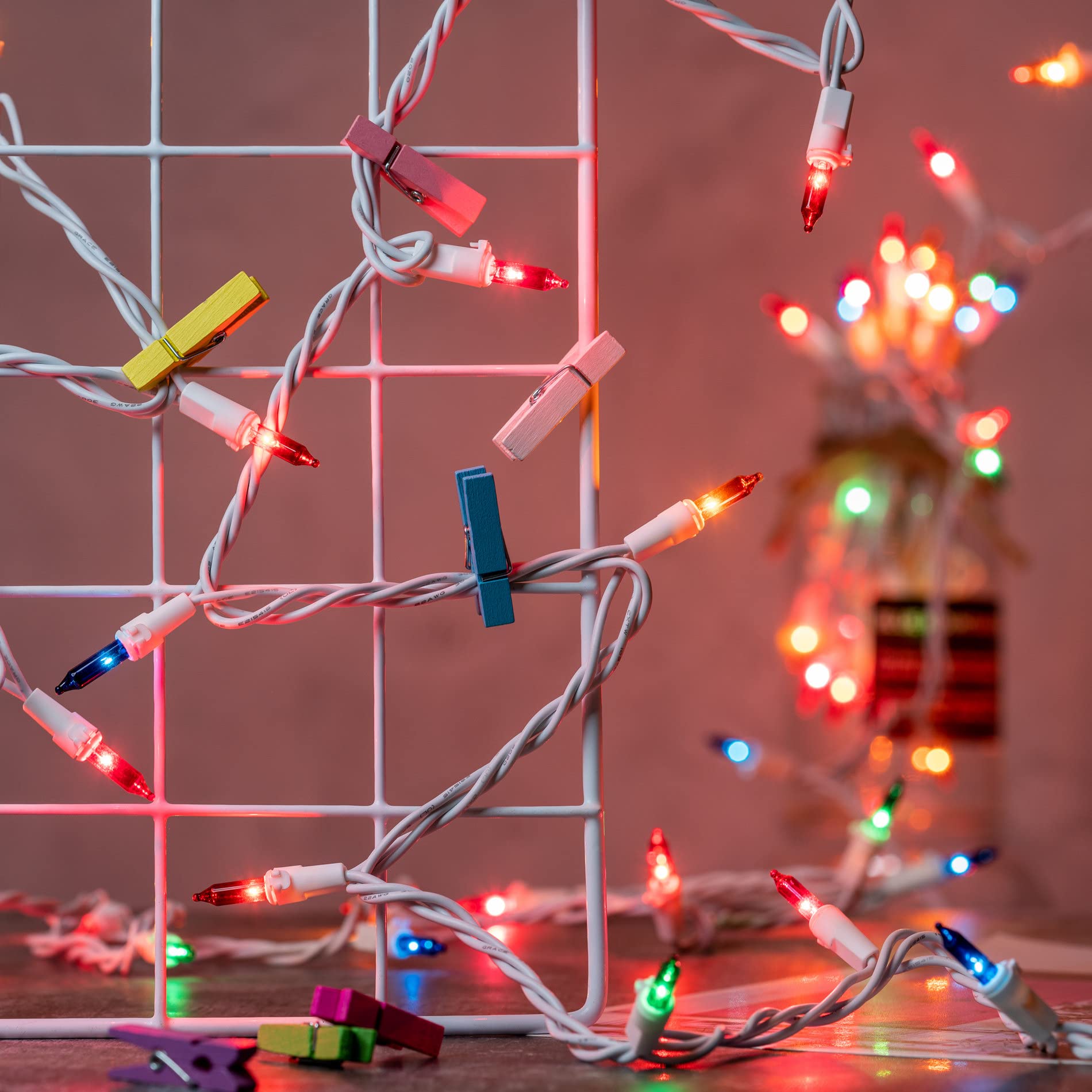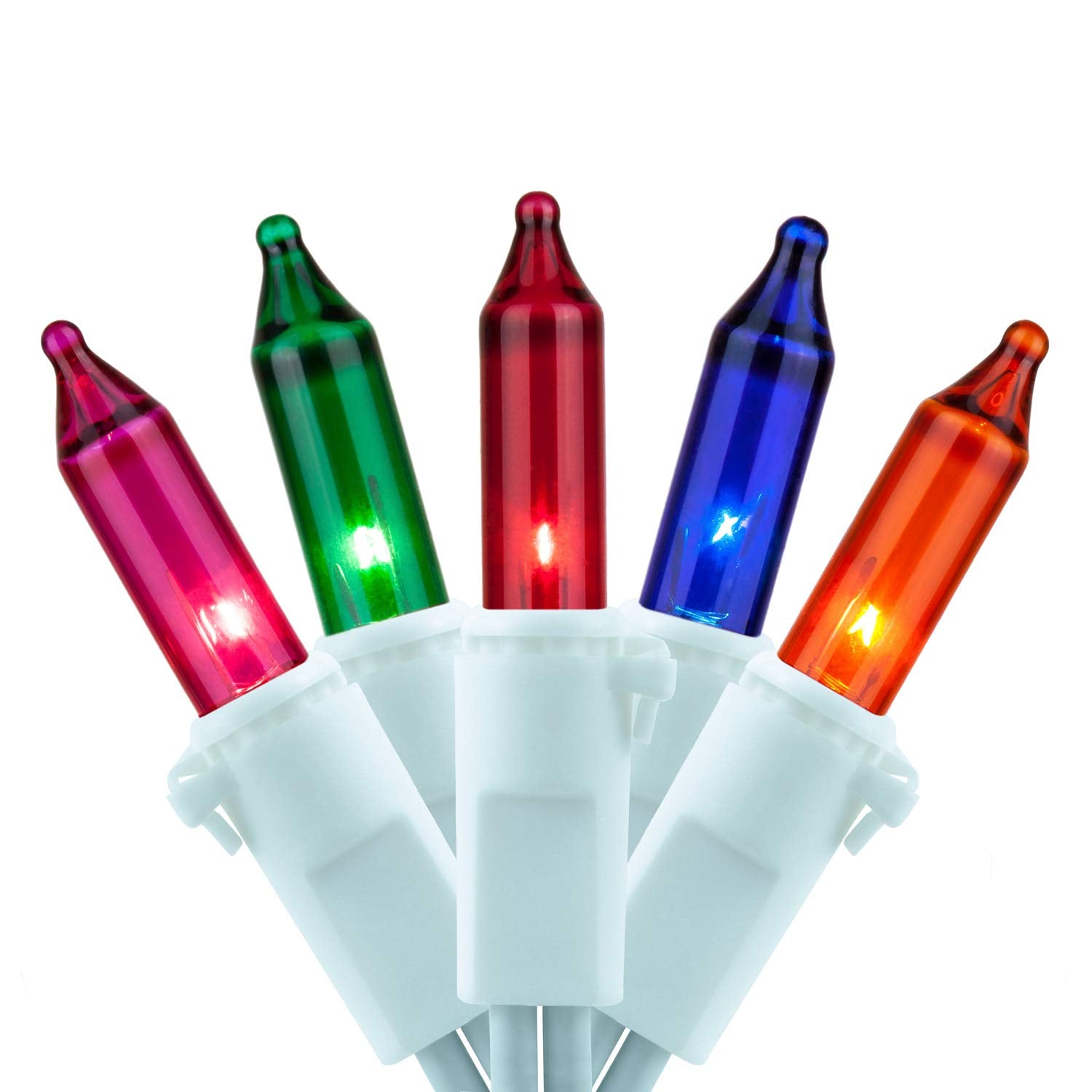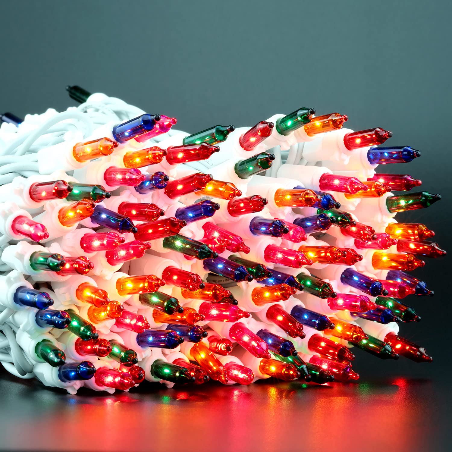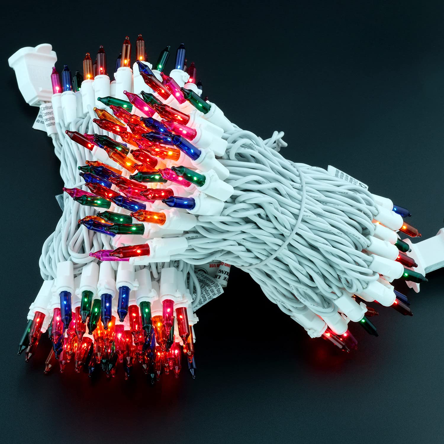 YULETIME 200 Multicolor Christmas Lights, Pack of 2 Sets 33 Feet 100 Count UL Incandescent String Lights (Multicolor - White Wire)