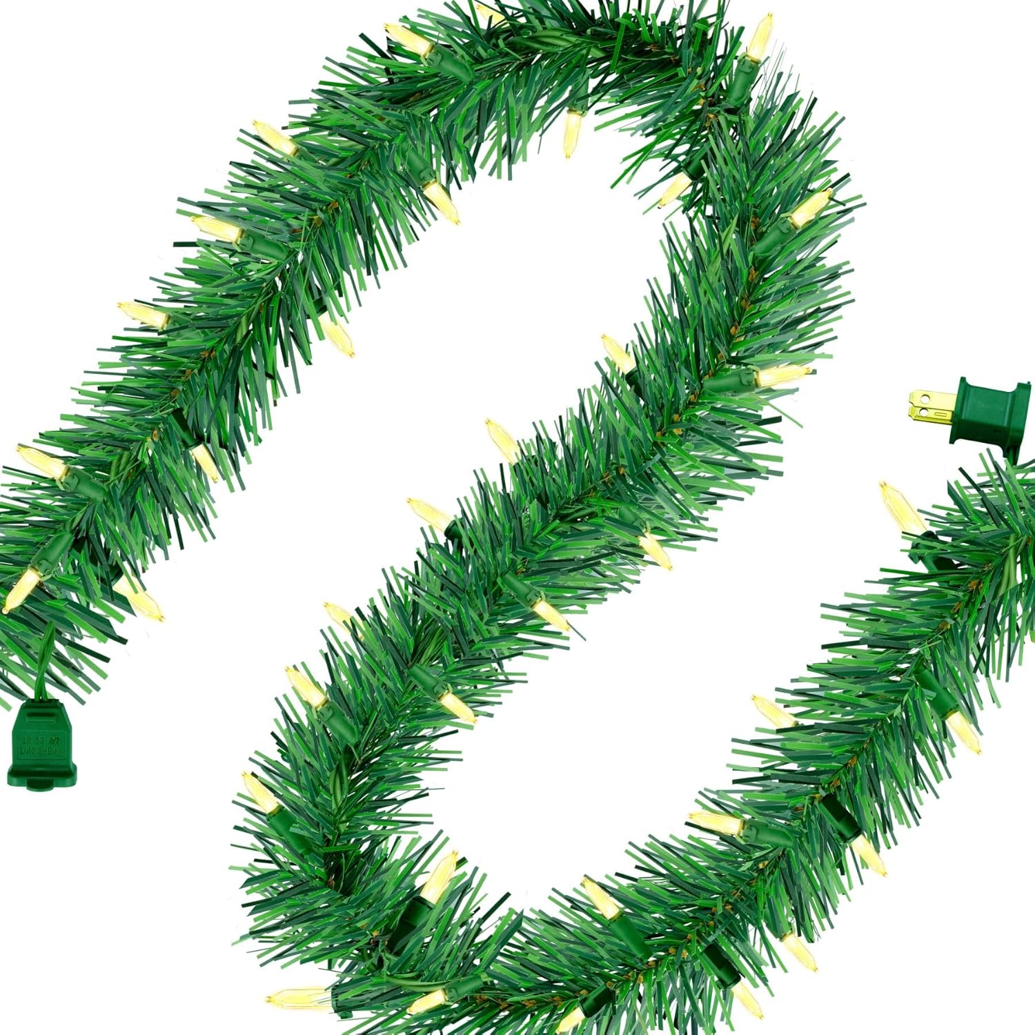 YULETIME 24 ft Christmas Garland with 50 Count Mini Lights, Lighted Artificial Garland with UL Listed Plug-in String Lights (Clear)