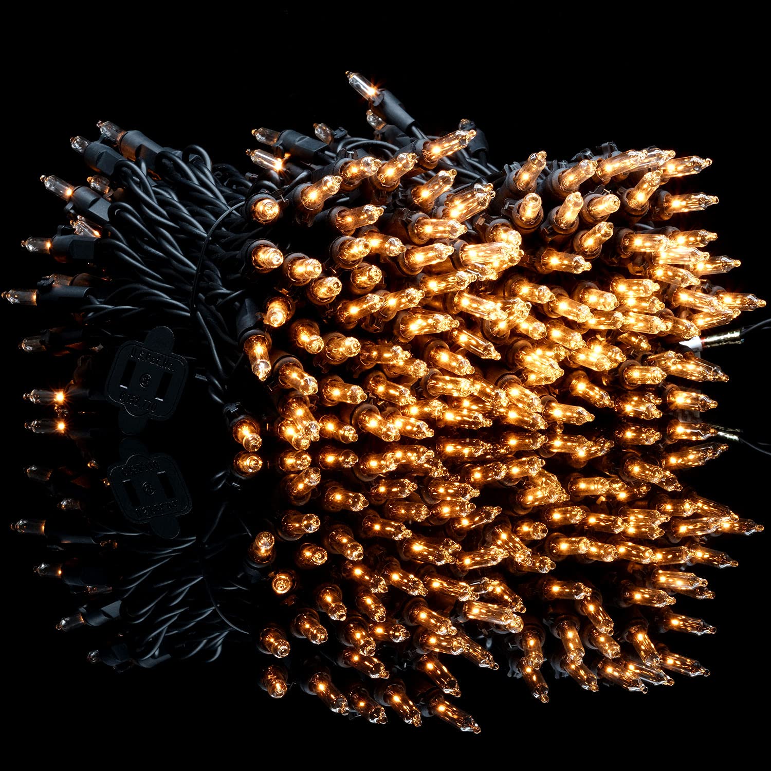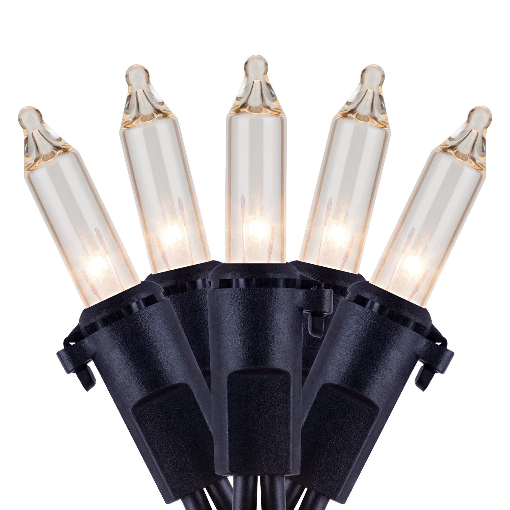 YULETIME Clear Christmas Lights with Black Wire, 66 Feet 200 Count UL String Lights, Pack of 2 Sets 33 Ft 100 Count Incandescent Mini Light Set (Clear)
