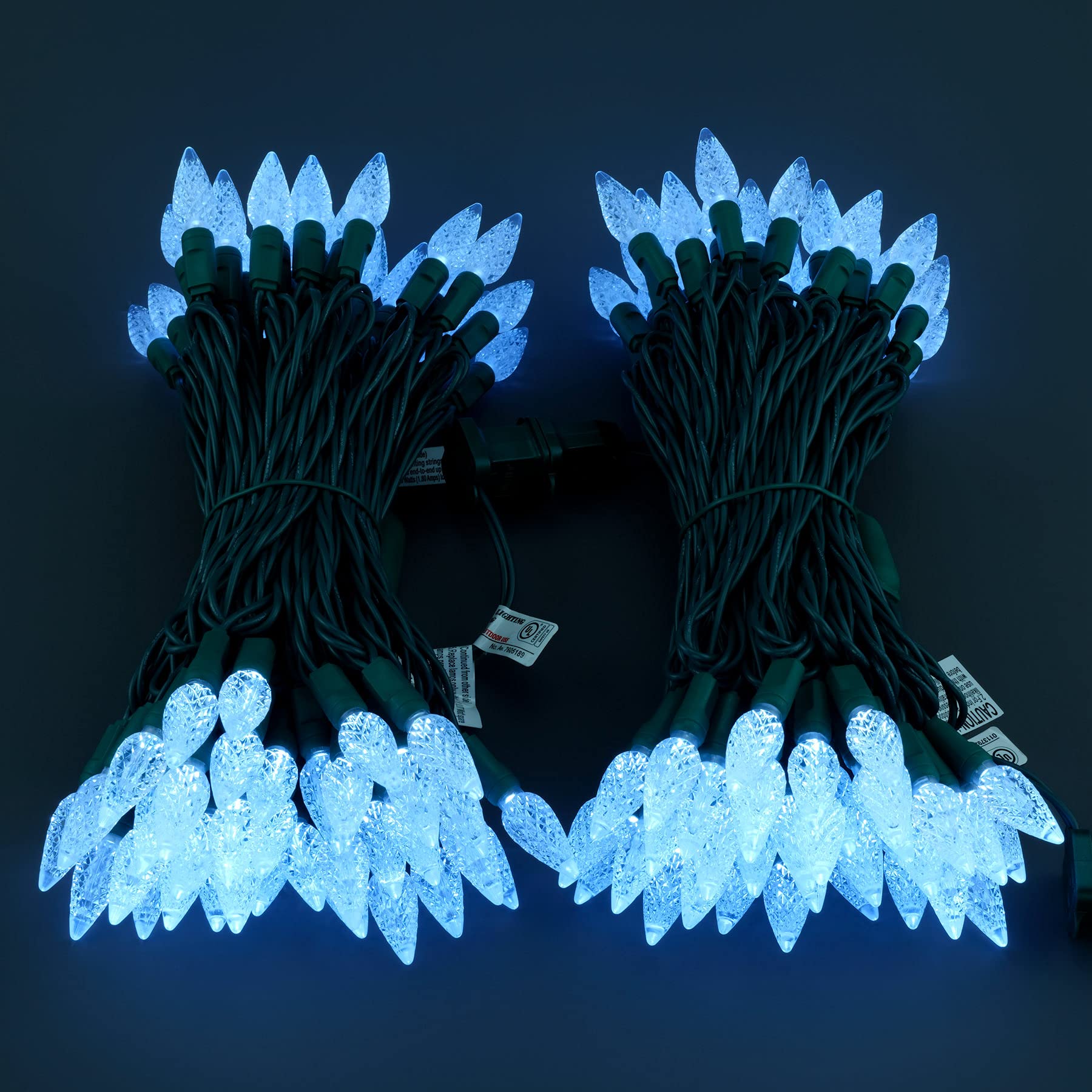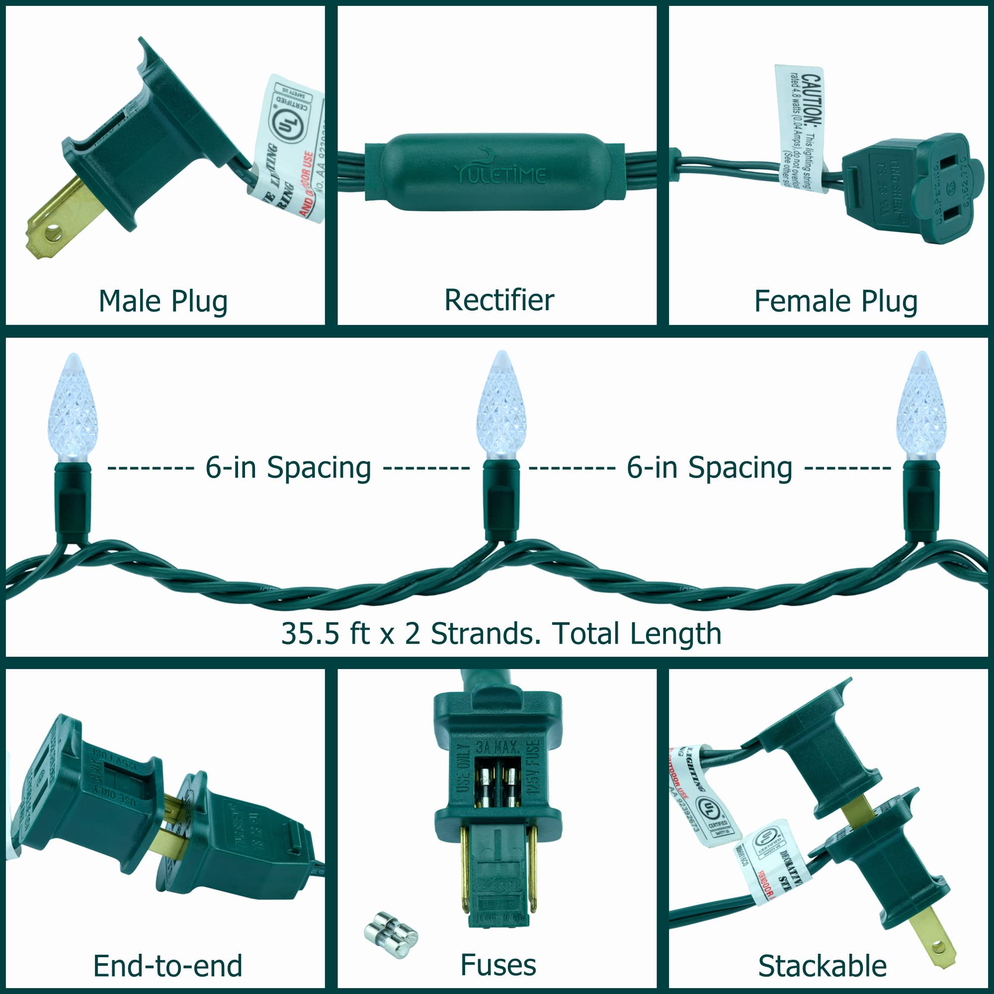 YULETIME Cool White One-Piece C6 LED Christmas Lights, Total 71 Feet 140 Count 2 Strands 35.5ft 70ct 6" Spacing Waterproof Strawberry String Light (Cool White)
