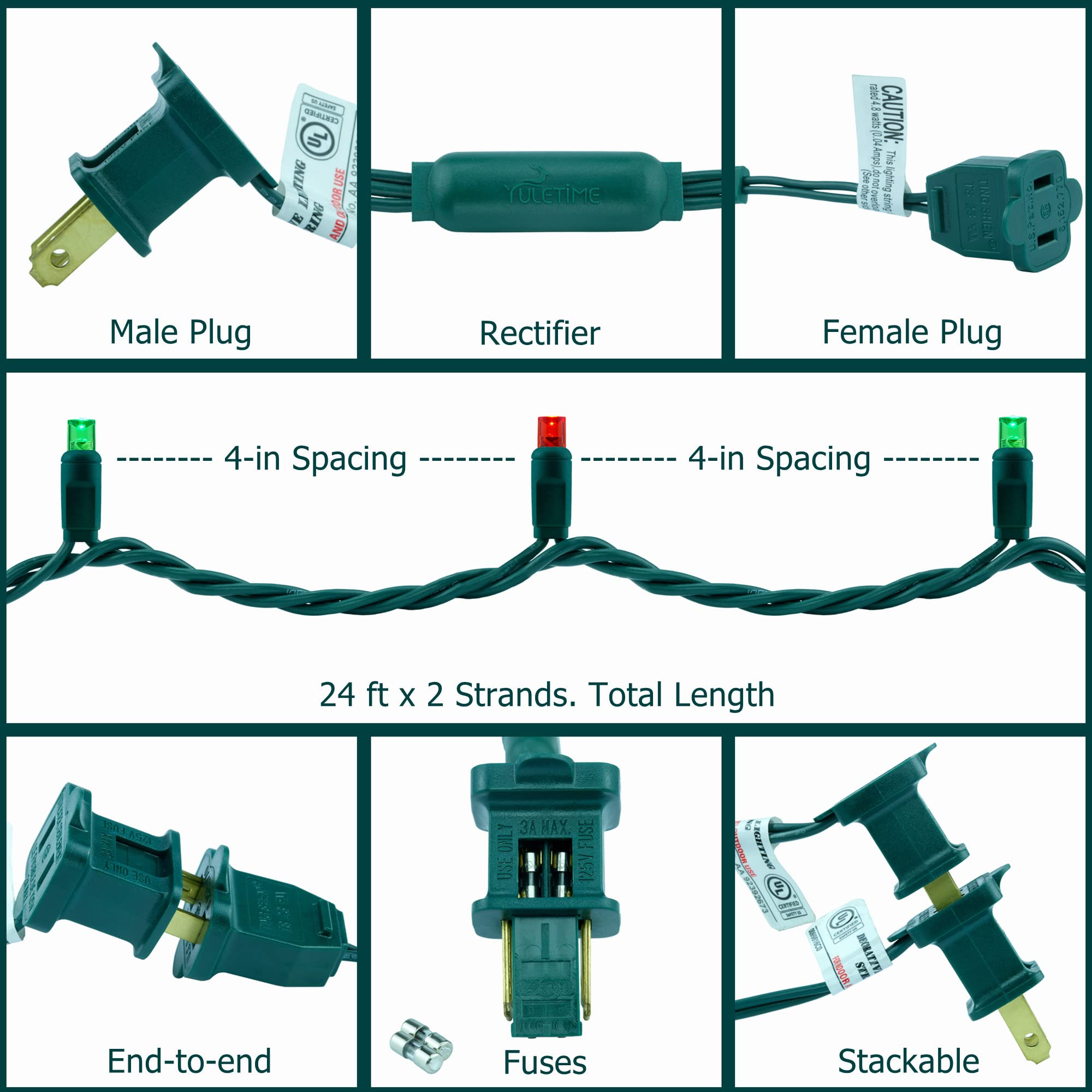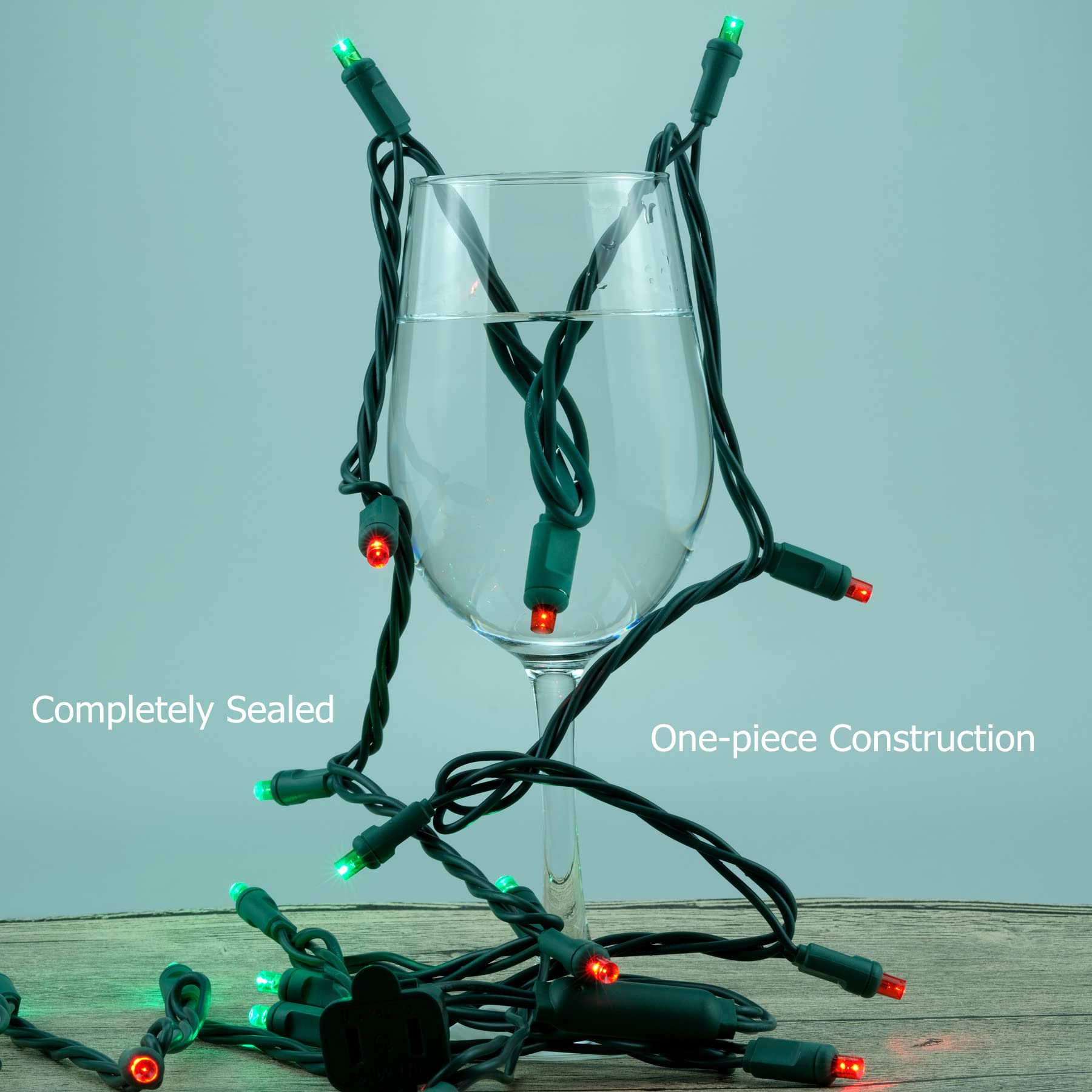 YULETIME Red & Green One-Piece 5MM LED Christmas Lights, Total 48 Feet 140 Count 2 Strands 24ft 70ct Waterproof Wide Angle String Light (Red & Green)