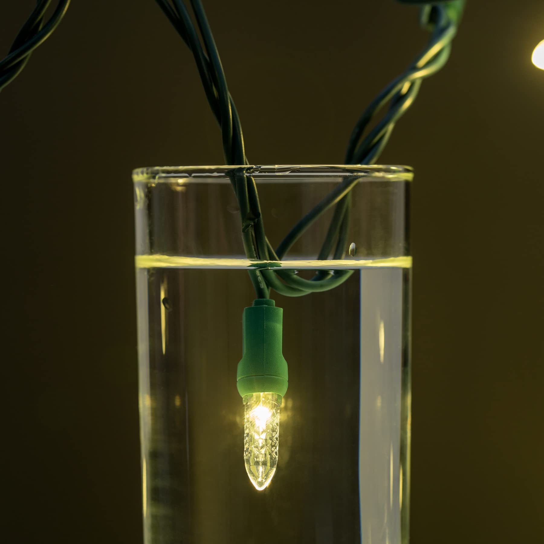 YULETIME Warm White One-Piece Faceted LED Christmas Lights, Total 48 Feet 140 Count 2 Strands 24ft 70ct Waterproof String Light (Warm White)