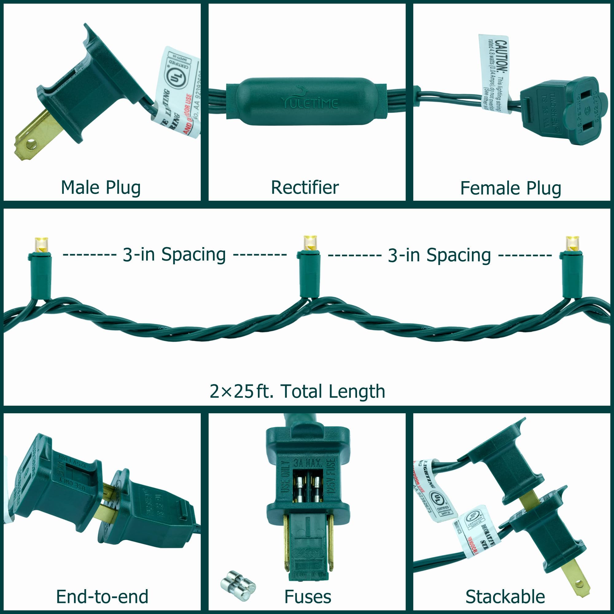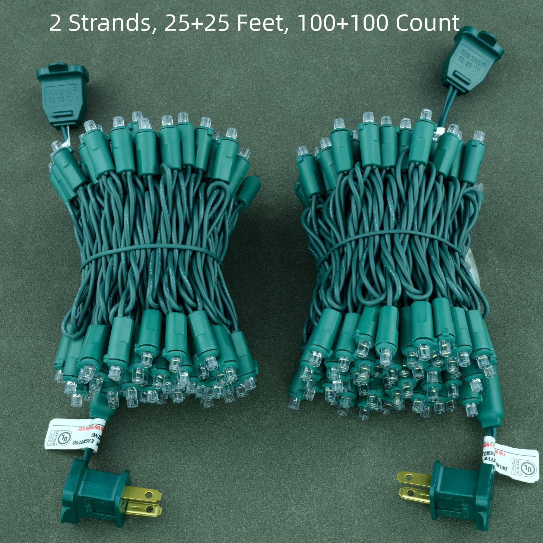 YULETIME Warm White Wide Angle LED Christmas Lights 200 Count 50 ft, Pack of 2 Strands 25 ft 100 Lights UL String Light Set (Warm White)