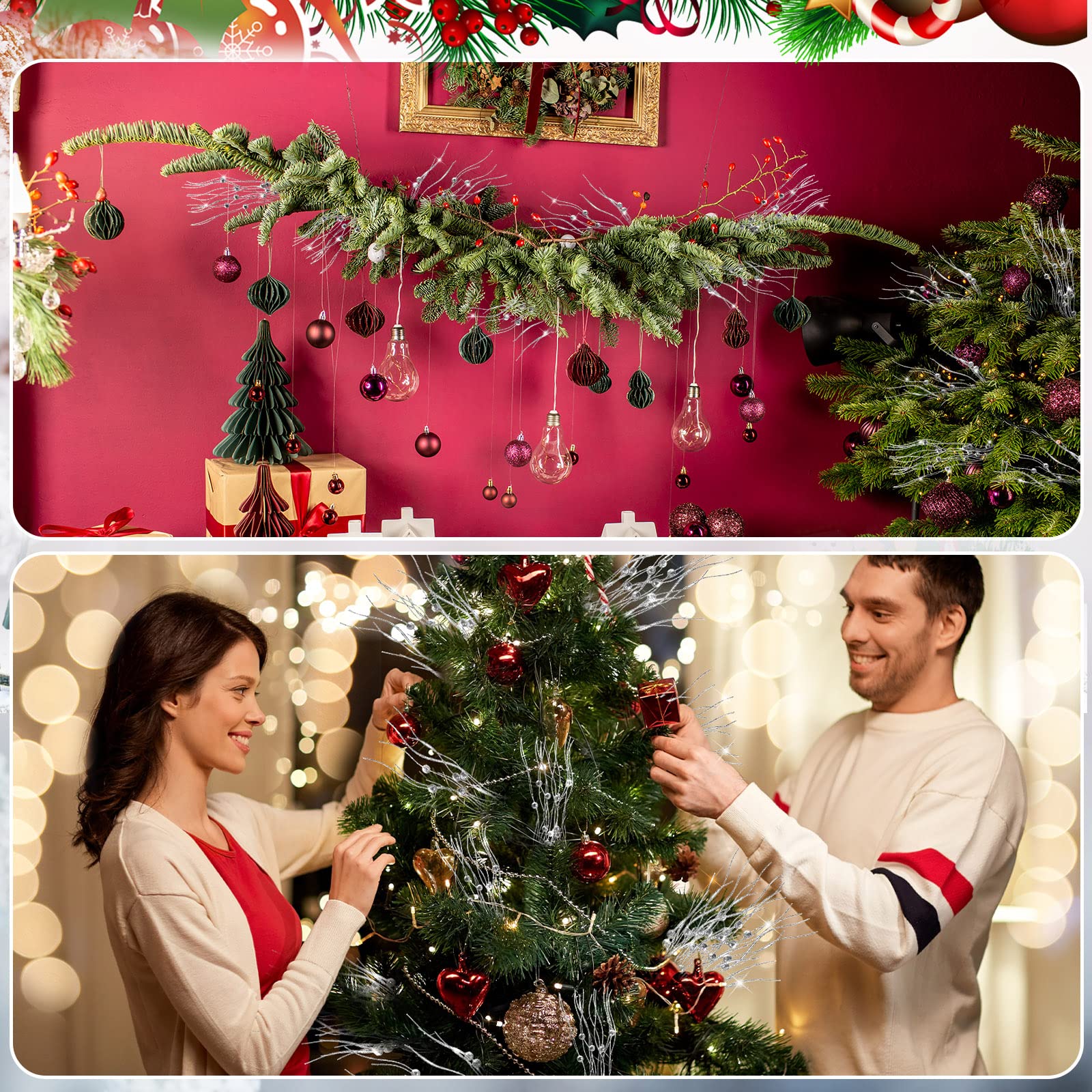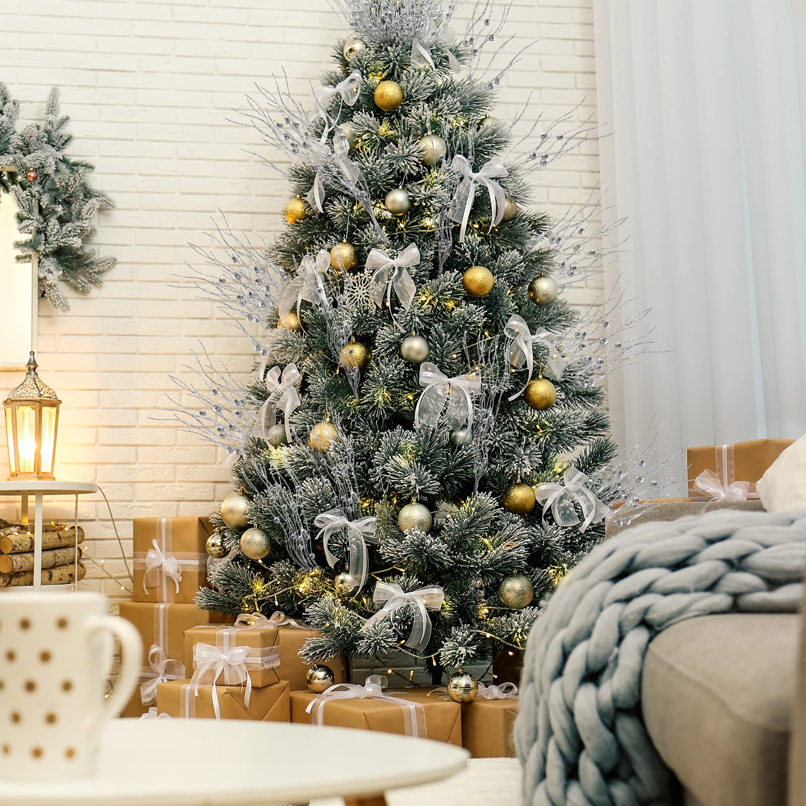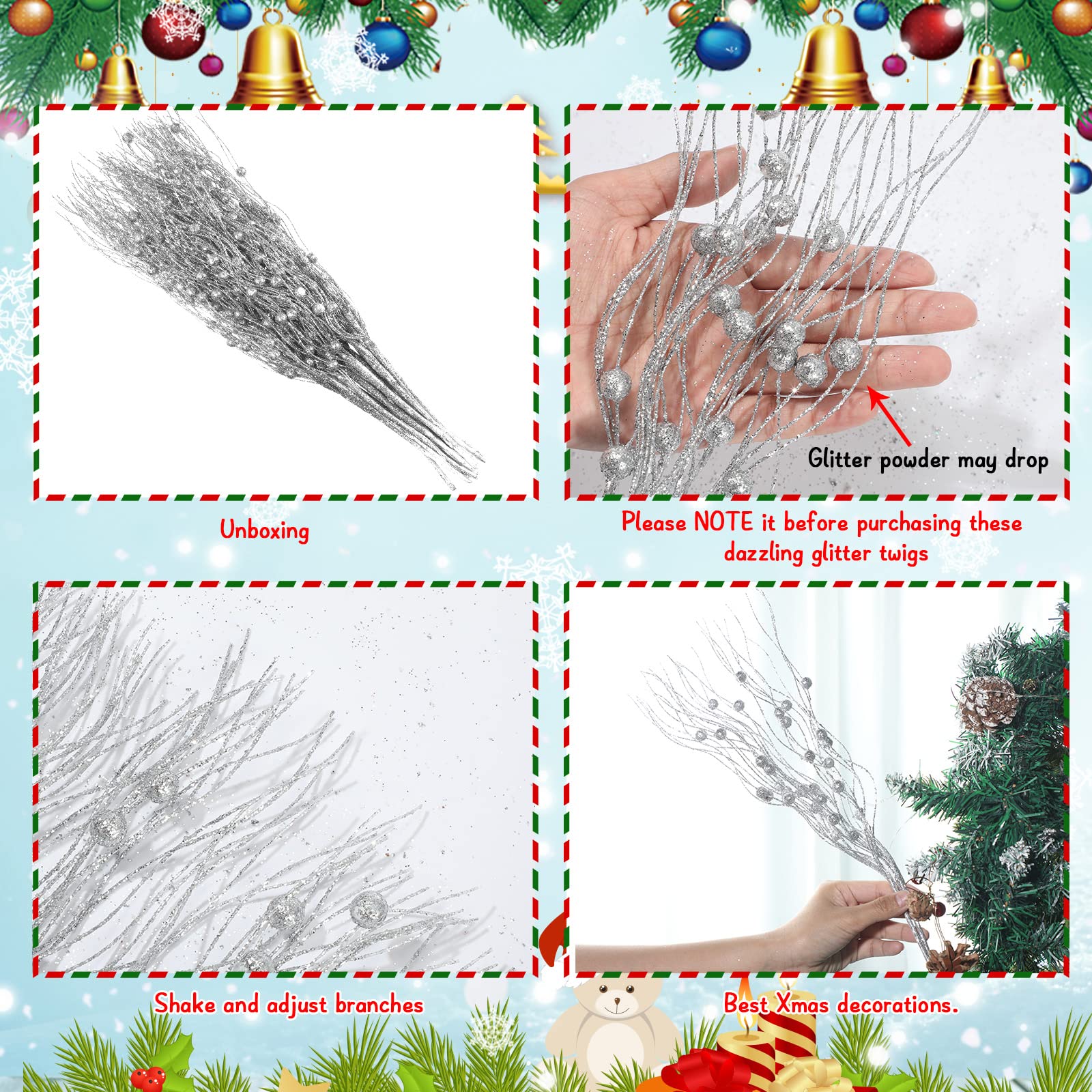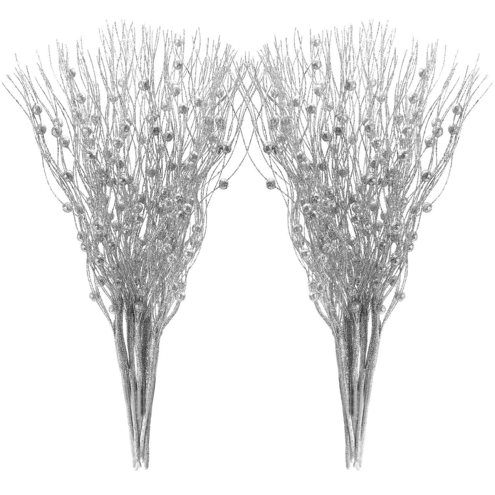 Yunsailing 20 Pcs Artificial Glitter Berry Stem Ornaments 17 Inch Fake Long Branch Tree Picks Flowers for Tall Vase Wedding Party Decoration(Silver)