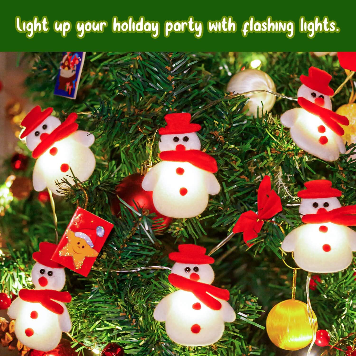 ZAUGONTW Christmas Snowman String Lights - 10 LEDs 5.4ft Waterproof Light Up String Lights, Short Plush Lights for Christmas Decorations (Battery Operated)