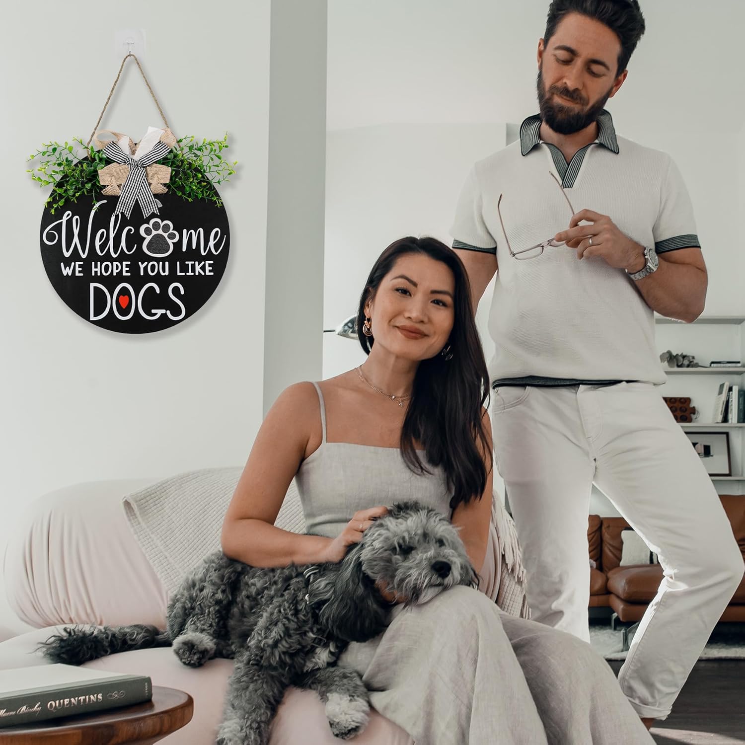 Zavothy Interchangeable Welcome Wreath Sign for Farmhouse Front Porch Decor - We Hope You Like Dogs, for Independence Day All Seasons Holiday Halloween Christmas Home Decoration