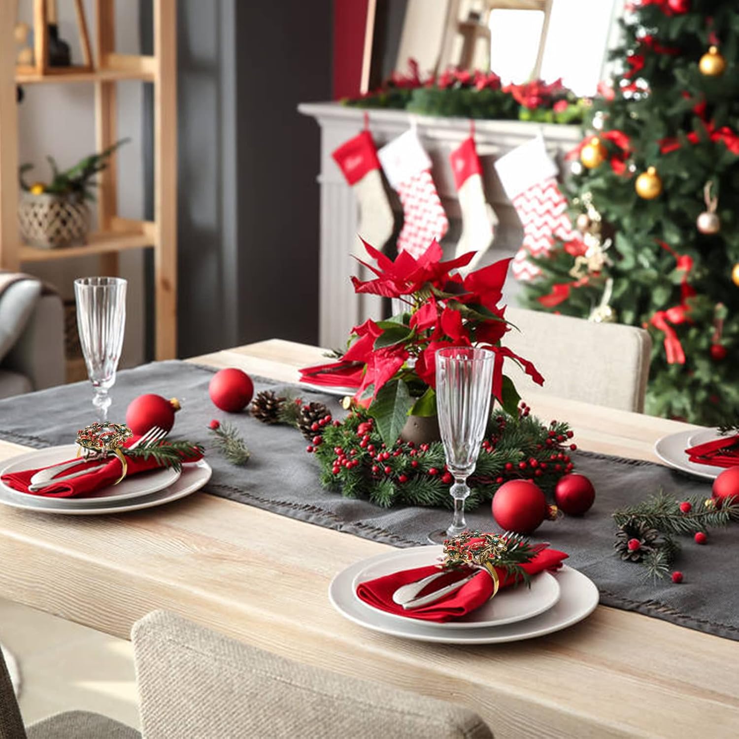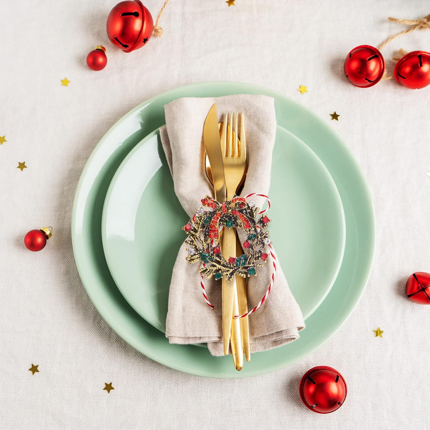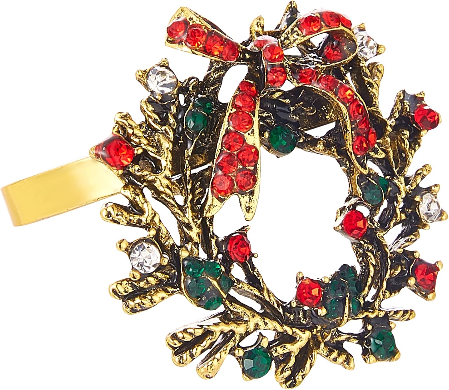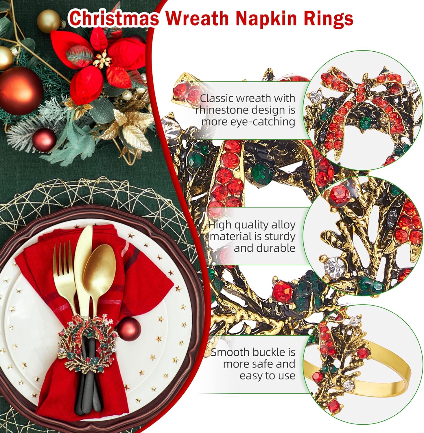 ZeeDix Christmas Wreath Napkin Rings Set of 6, Holiday Napkin Rings Christmas Napkin Ring Holders for Cloth Napkins, Xmas Napkin Rings for Christmas Thanksgiving Holiday Dinner Party Table Setting