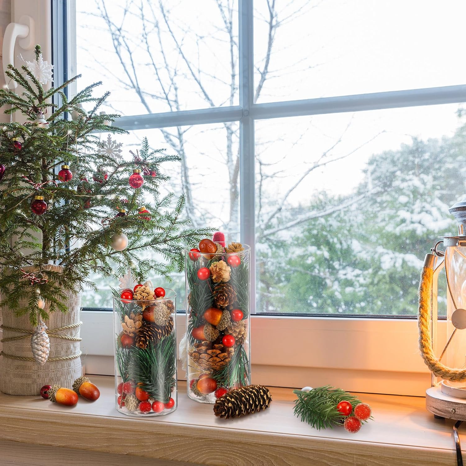Zeyune 180 Pcs Christmas Pine Cones Holly Berry Craft Pine Branch Set Christmas Potpourri Bowl Filler Vase Filler Wreath Decorations Frost Berry Assorted for DIY Home Tree (Natural,Pine Cone)