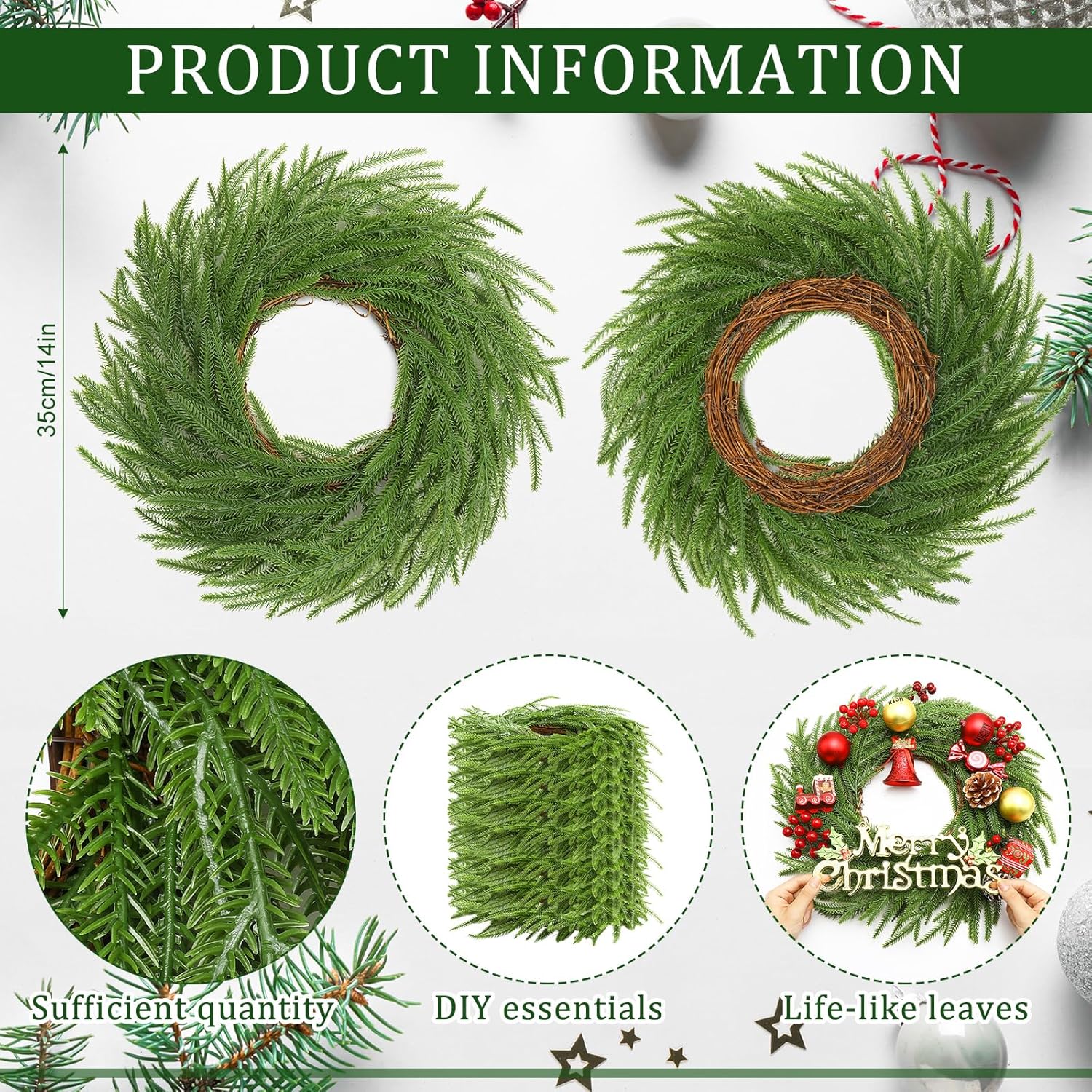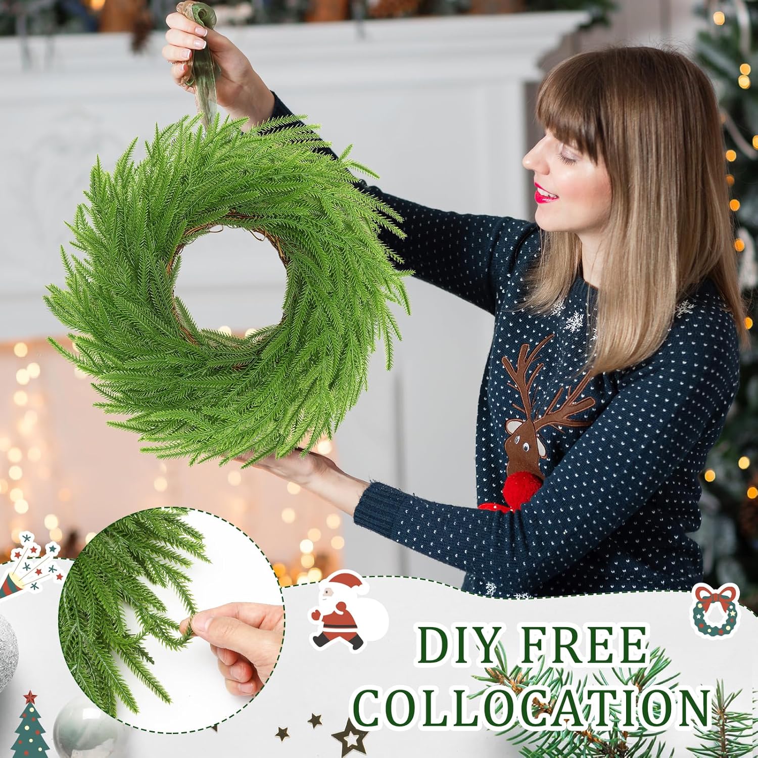 Zeyune 8 Pcs Christmas DIY Green Wreath 14 Inch Artificial Christmas Wreaths Faux Plain Wreaths for Decorating Front Door Window Room Farmhouse Christmas Party Indoor Outdoor (Norfolk Pine)
