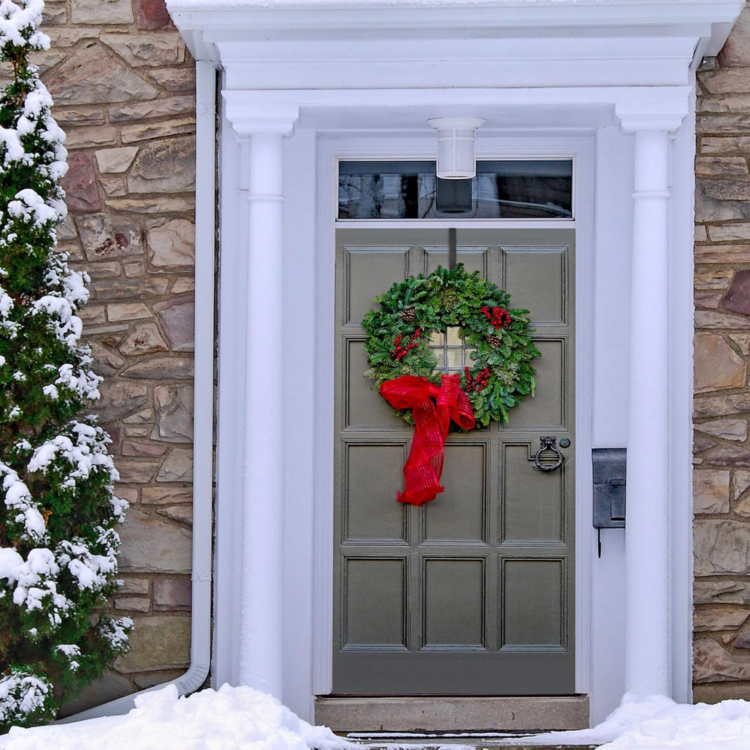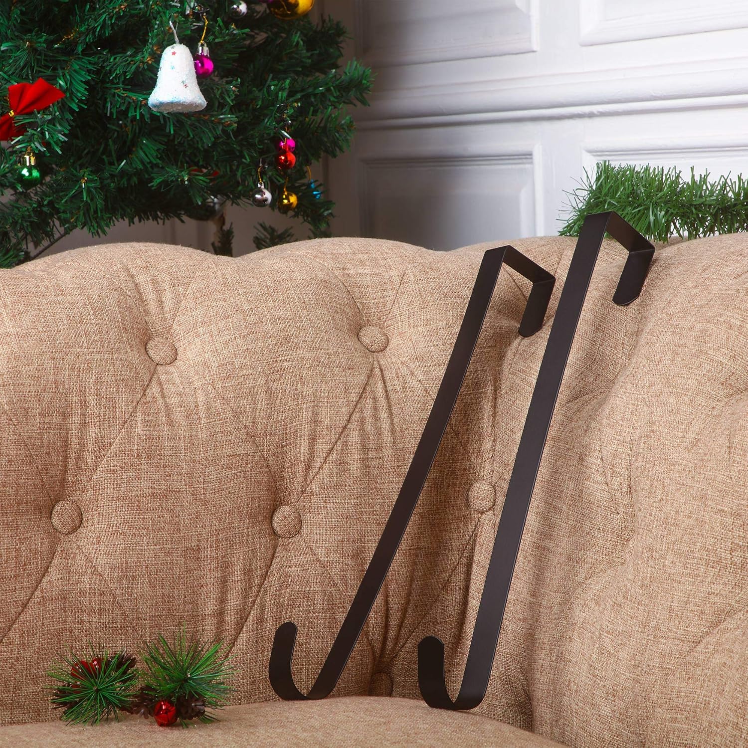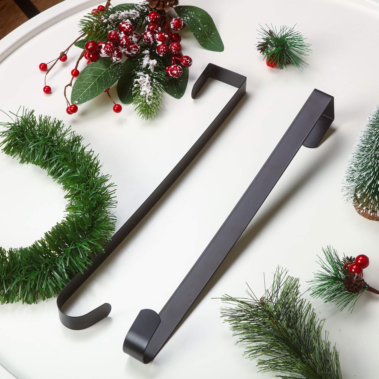 Zhehao 3 Pieces Christmas Decor Metal Wreath Hangers Over The Door Light Handy Wreath Hanger Hanging Hook (14 Inch, Black)
