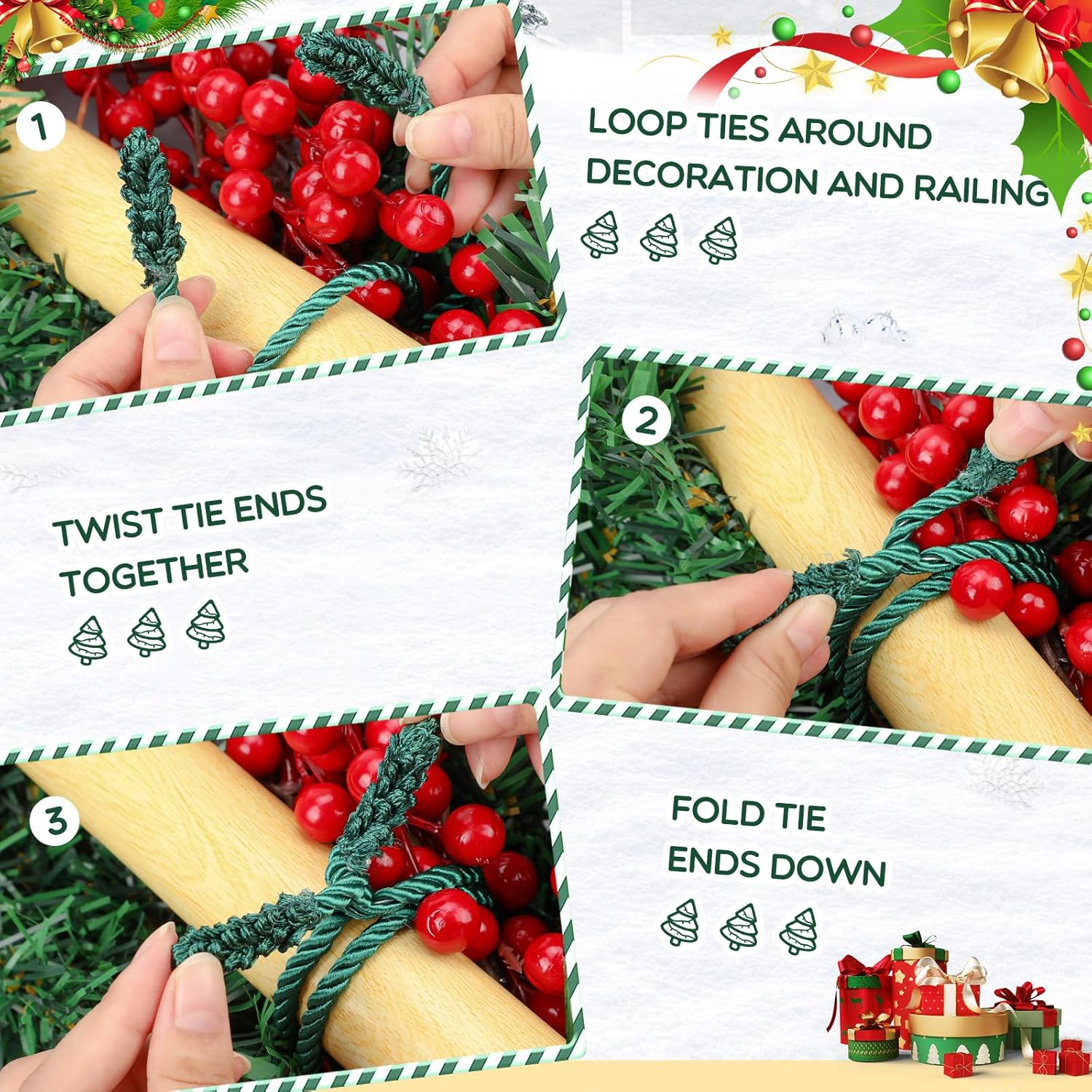 Zhengmy 20 Pcs 25 Inch Extra Long Christmas Garland Ties Christmas Decorative Twist Ties for Banister Reusable Flexible Twist Ties for Xmas Holiday Home Decorations Christmas Craft Wrapping(Green)