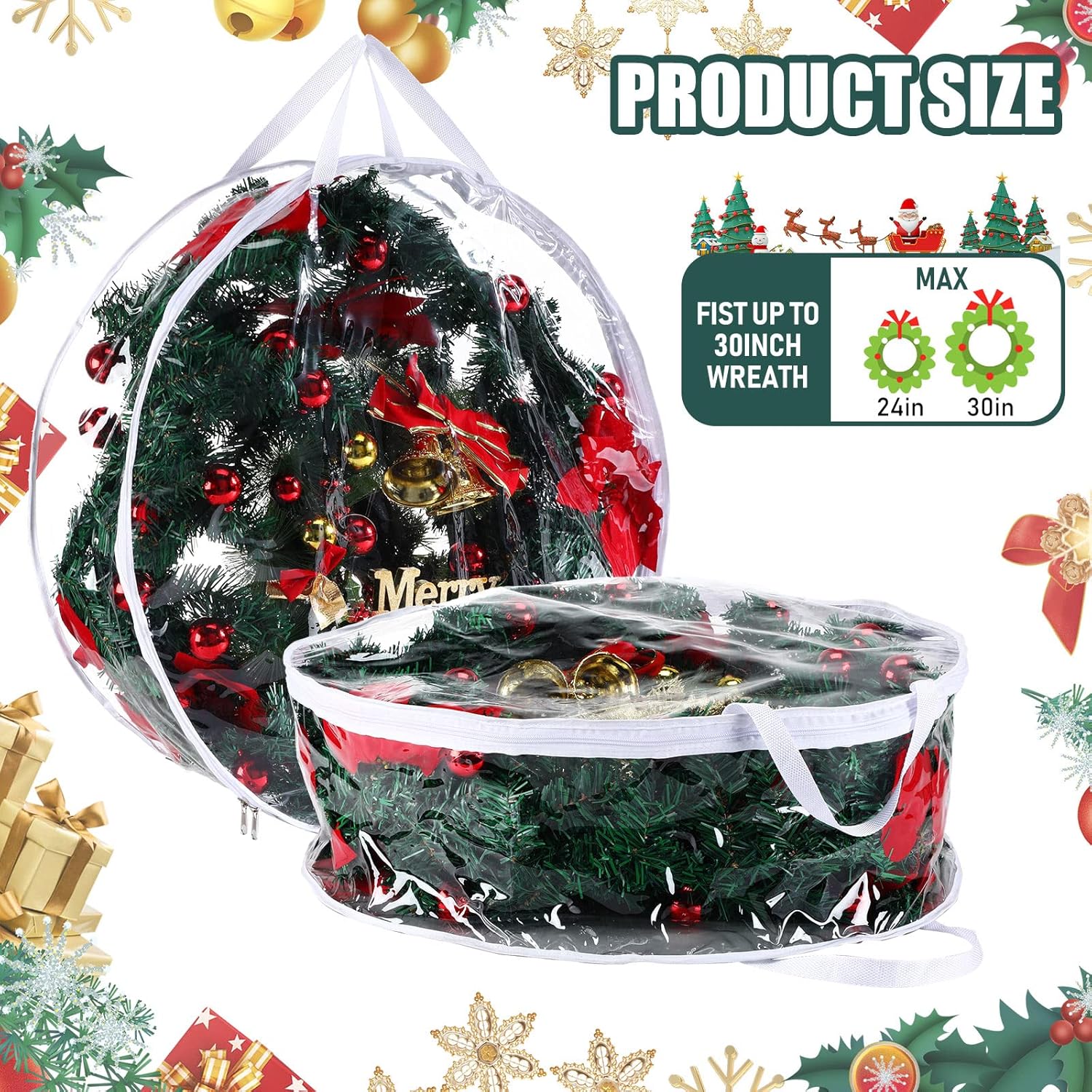 What You Get: the package includes 5 pieces of Christmas wreath storage bags, each wreath storage container have a diameter of 30 inches, and 8 inches high, can meet your needs for storing most Christmas wreaths, making storage one less headache And they can also be applied to store garland, greenery, and other seasonal itemsClear Storage Bag: our plastic wreath storage container is clear transparent, easily see the beauty of the wreath both front and back, and the transparent design make you can always know exactly which wreath is being stored, helps you easily get the wreath you need