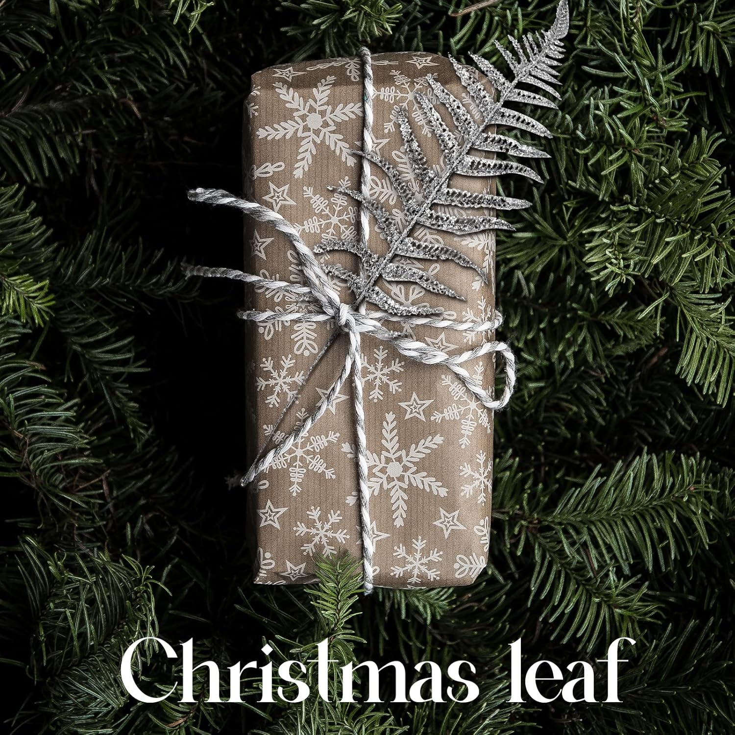 ZMZQ&flw 24pcs Christmas Glitter Leaves for Xmas Tree Decorations, Artificial Boston Fern Bush Tropical Flashing Leaves DIY Christmas Wreath s Crafts, Glod