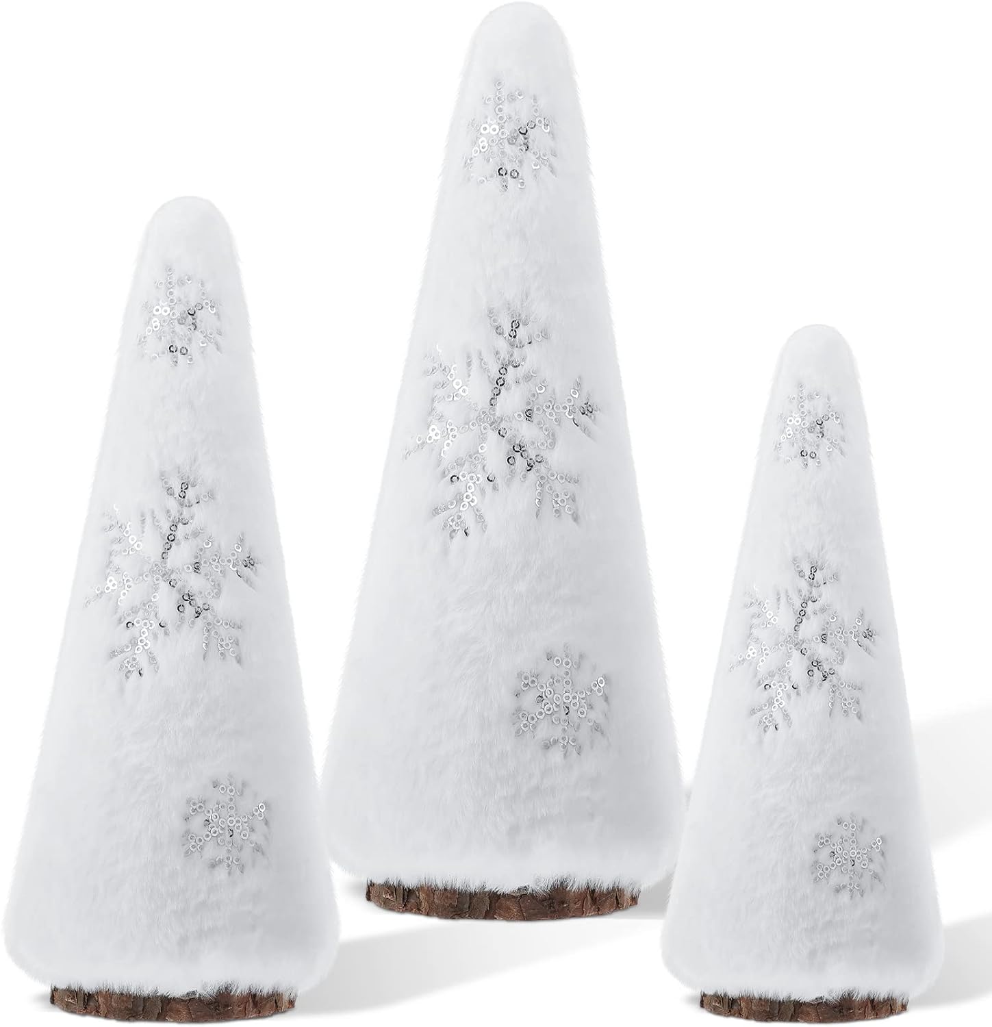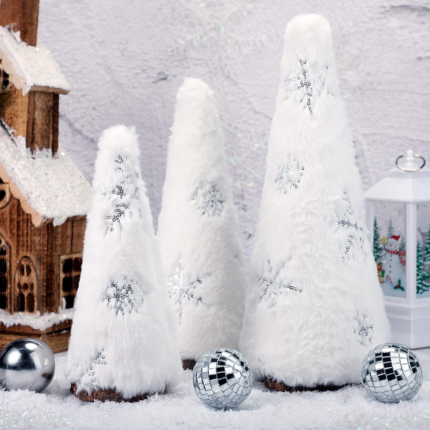 3 Different Sizes for You to Choose: these tree centerpieces for tables are respectively about 31.5 x 12 cm/ 12.4 x 4.72 inches, 26 x 10 cm/ 10.24 x 3.94 inches and 22 x 9 cm/ 8.66 x 3.54 inches, enough quantity and various sizes can meet your festival decoration needsReliable Material Selection: these Christmas table decors are made of quality plush, and stitched with glittered snowflakes, exquisite in appearance, nice in workmanship, soft and comfortable to touch, offering a long service time and providing you with a nice using experience