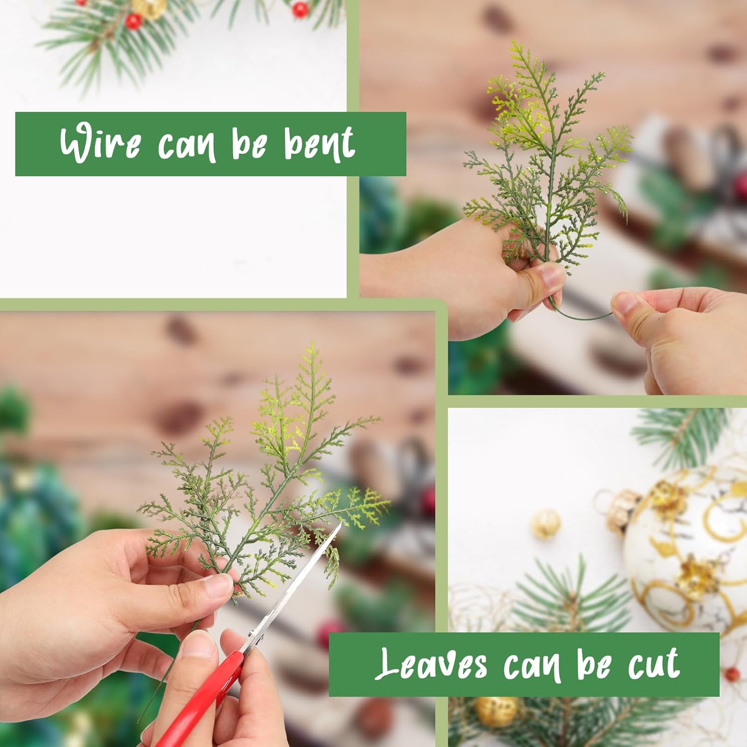 ZYP 40Pcs Artificial Pine Needles Branch,Christmas Faux Pine Needle,Artificial Faux Cedar Branch,Fake Greenery Pine Picks for Craft DIY Christmas Embellishing and Home Garden Decoration